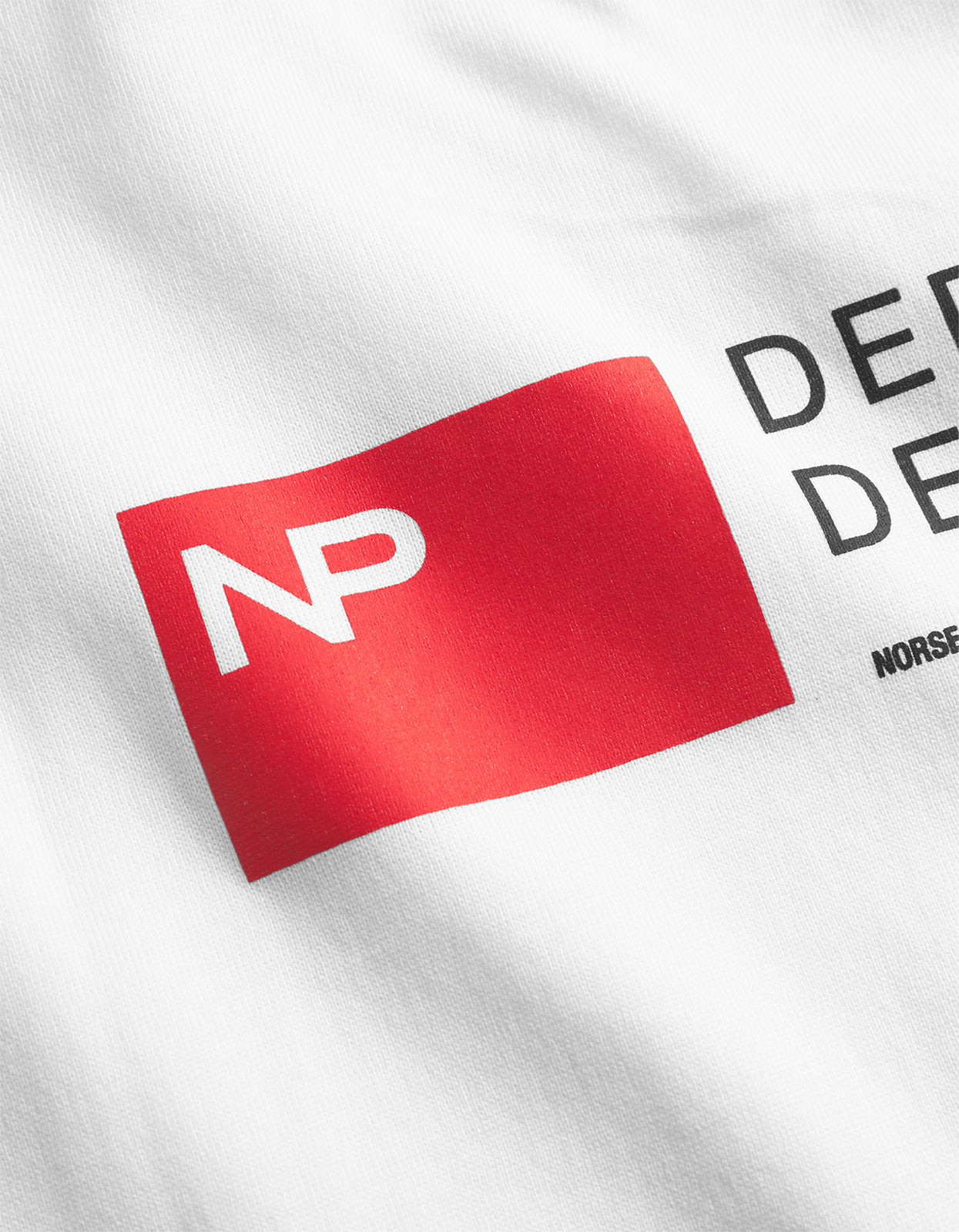 The Holger Organic Department Print T-shirt in White from Norse Projects offers a minimalist design with a touch of urban flair.