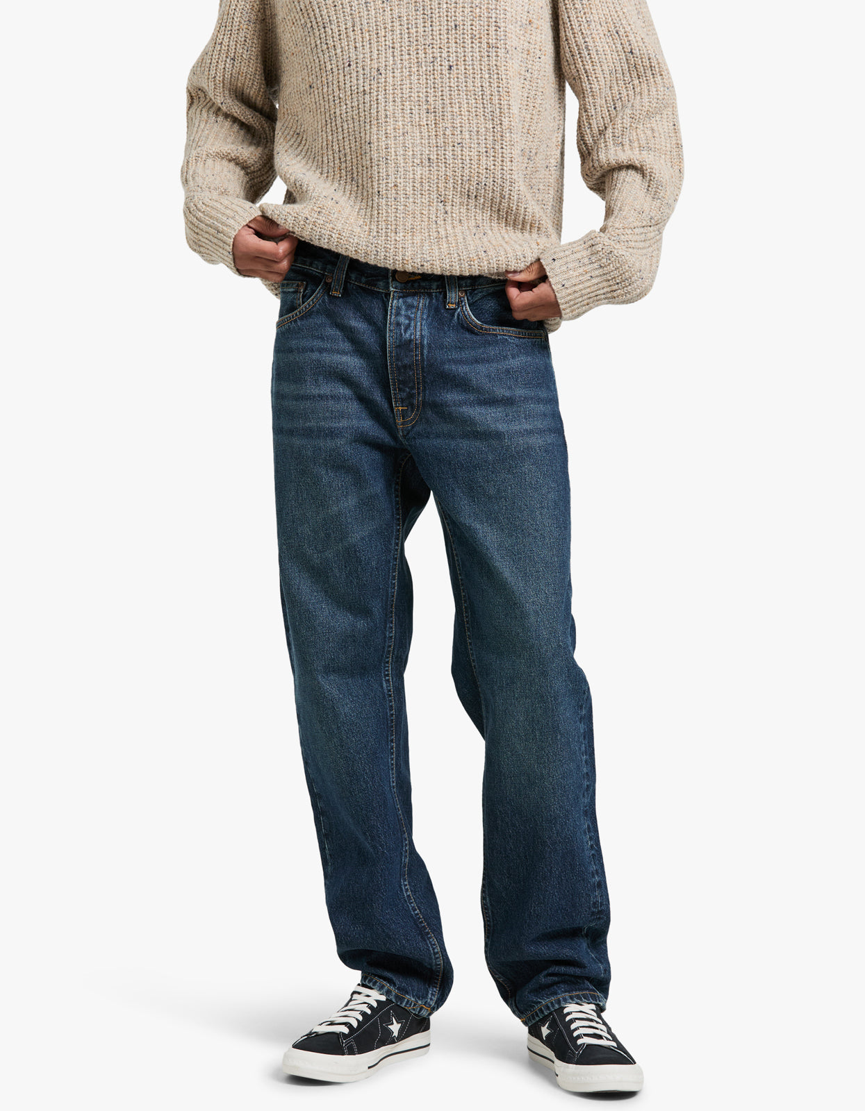 Indulge in the effortless style of the Rad Rufus Blue Soil Jeans from Nudie.