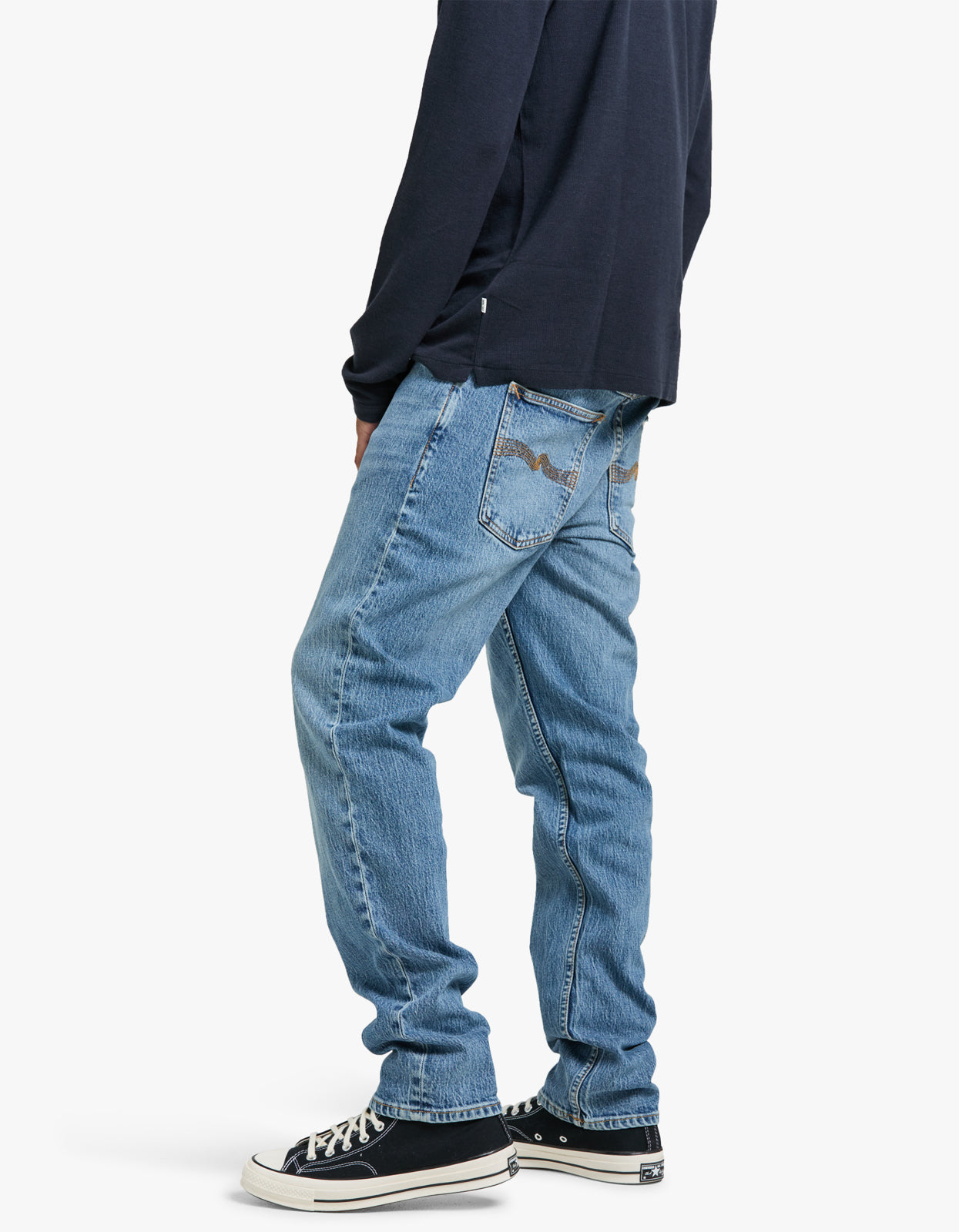 Elevate your denim game with our Solid Ollie Jean in Worn Vintage from Nudie.