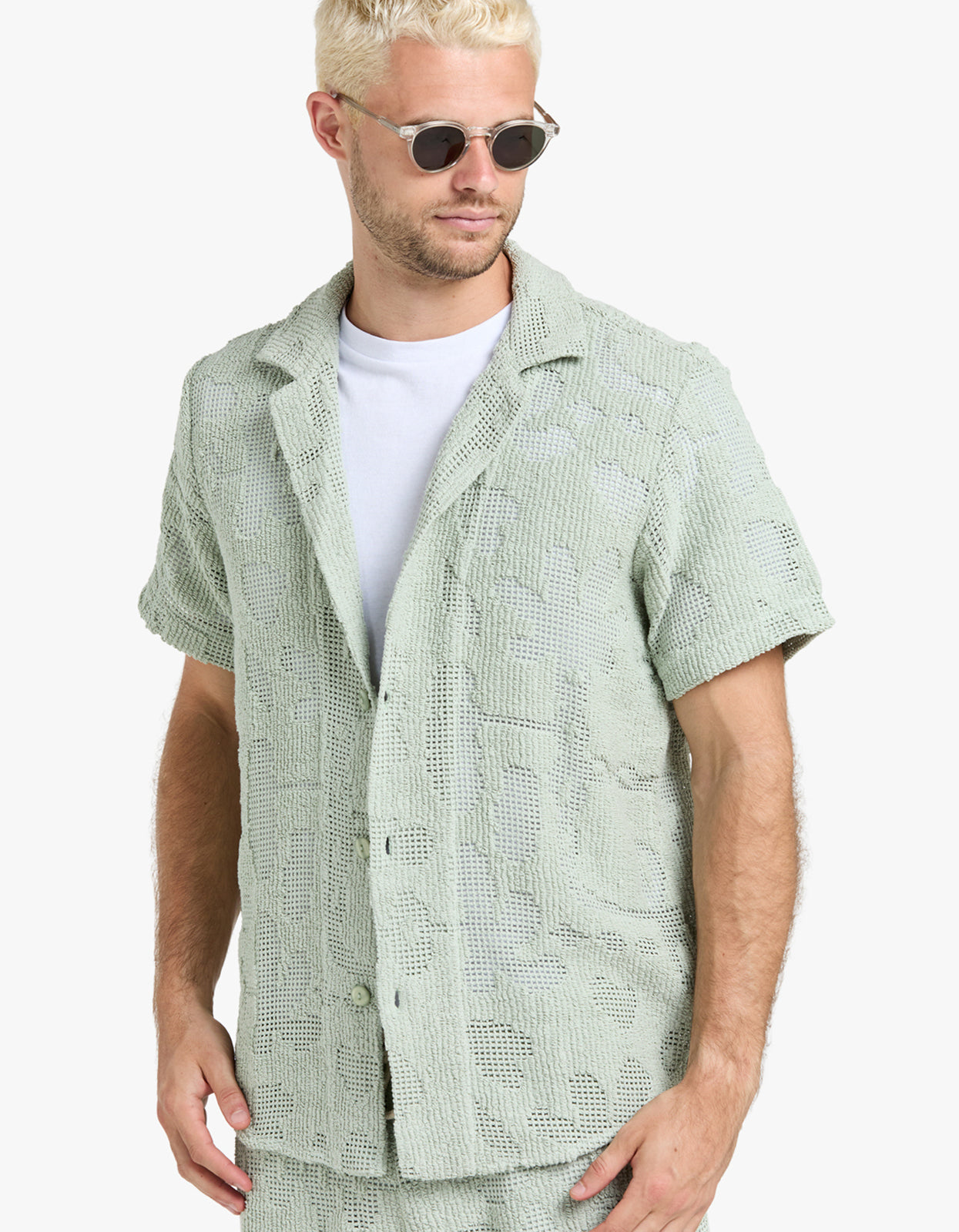 Experience the epitome of elegance in the Cuba Crochet Shirt - Galbanum from OAS.