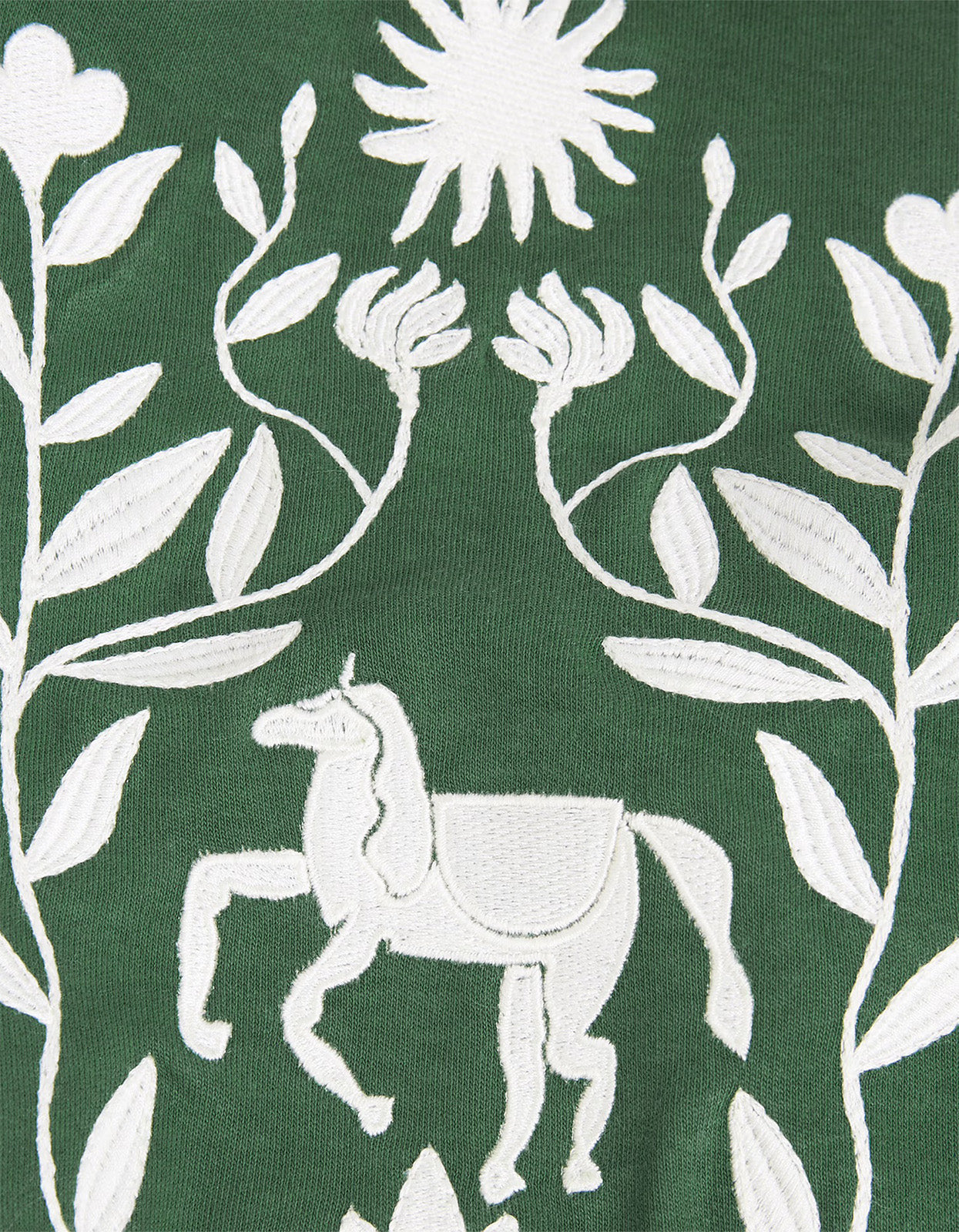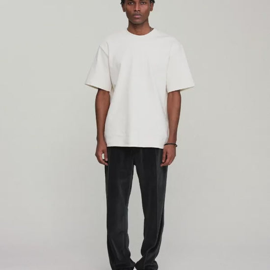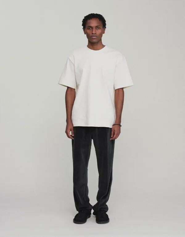 Crafted from 300g cotton interlock knit, this heavyweight piece delivers exceptional durability without sacrificing softness or breathability. Its relaxed silhouette and classic crewneck create a timeless foundation, while the matte feel adds a refined touch. The back showcases a distinctive blend of print and embroidery, featuring seasonal artwork that elevates the design.