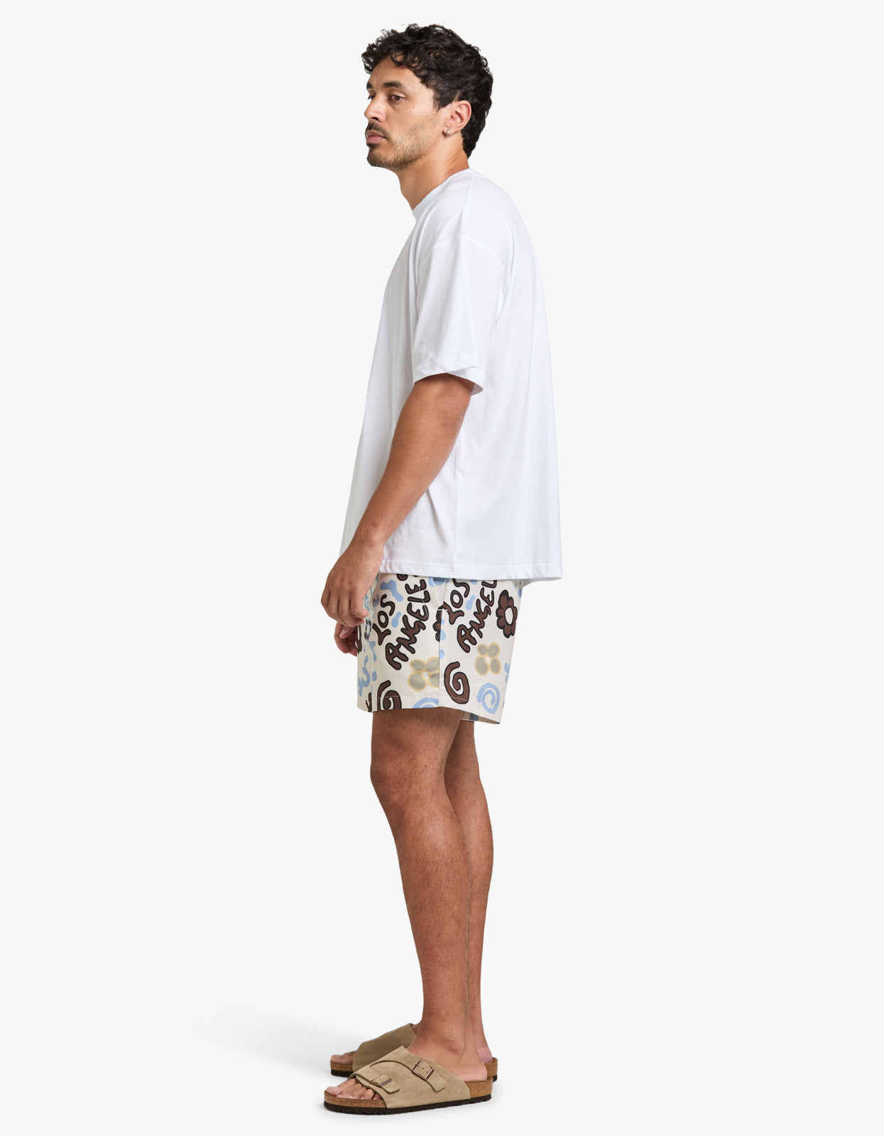 Dive into summer with the Oas Swim Shorts in Memento, featuring an abstract print in ecru with lightweight quick-drying fabric.
