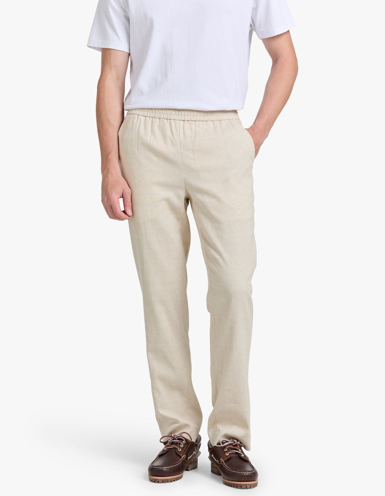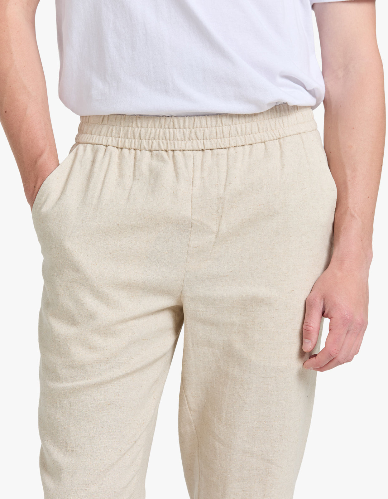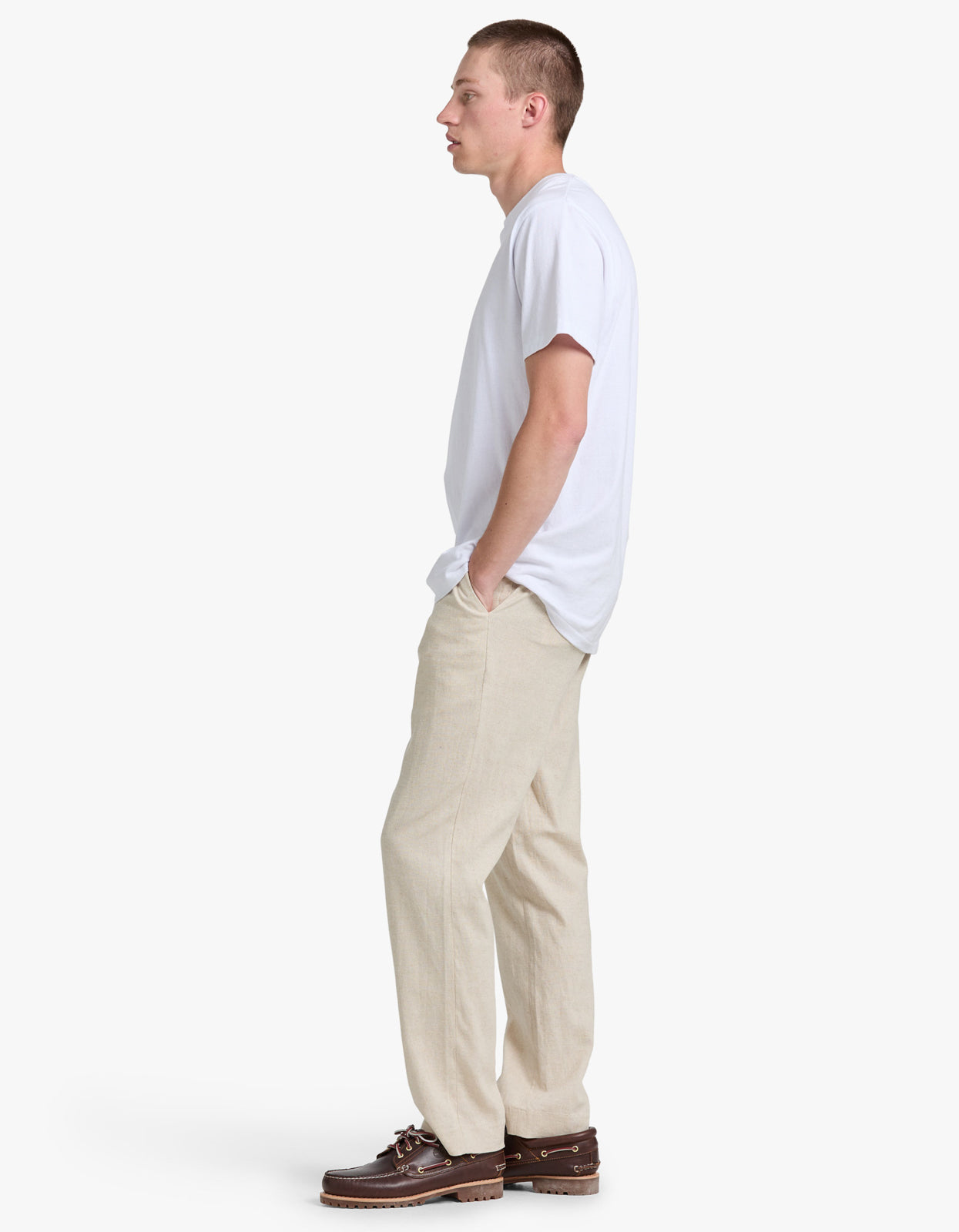 Indulge in luxury with Once Were Human's Davis Linen Pant in oat. Newly improved, these pants pay tribute to the iconic Sammy Davis Jr. from the Rat Pack.