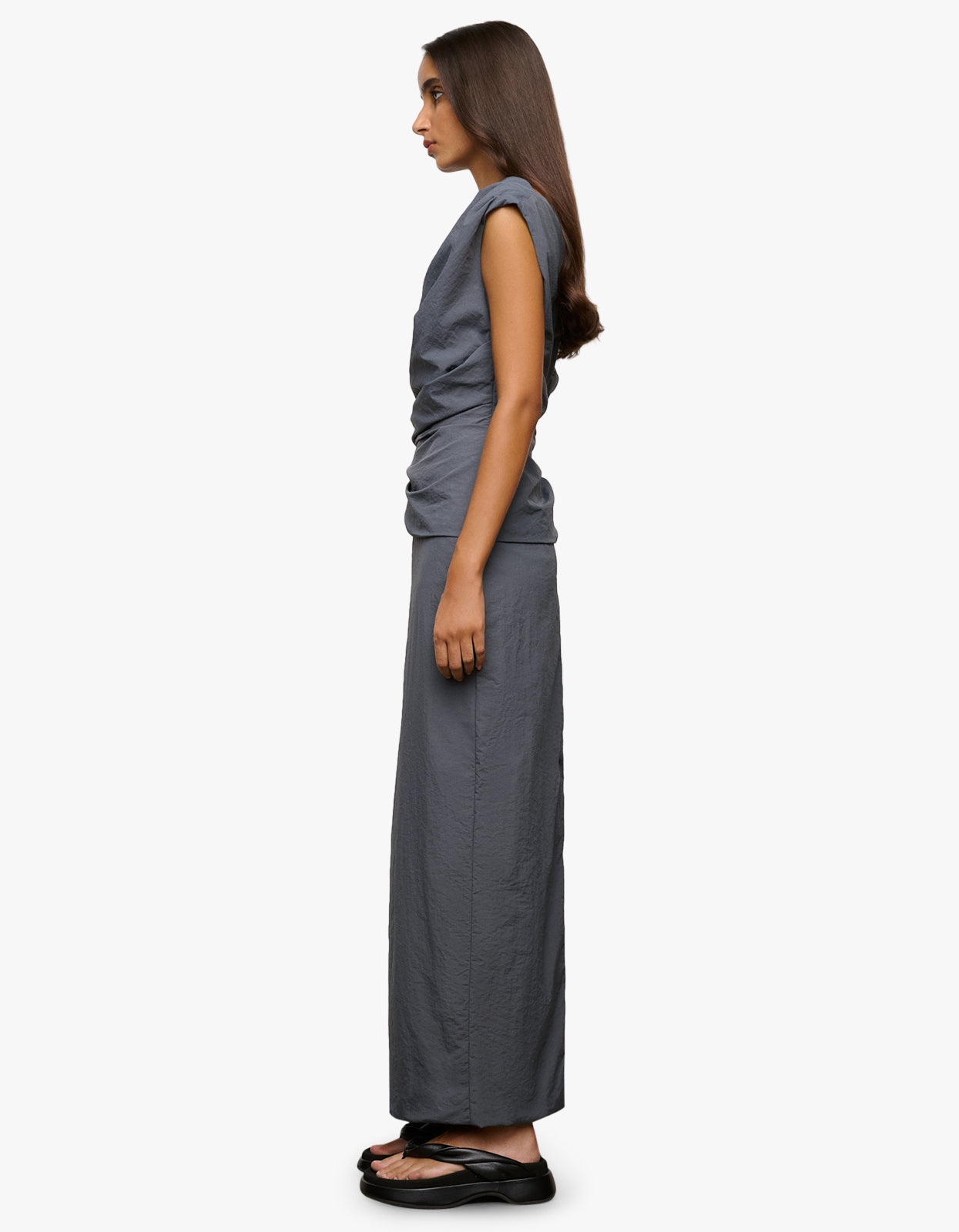 Features a draped and off shoulder design with tuck details. Made with a lightweight cotton blend, it boasts a soft and crisp handle, perfect for any occasion. Elevate your wardrobe with this luxurious piece.