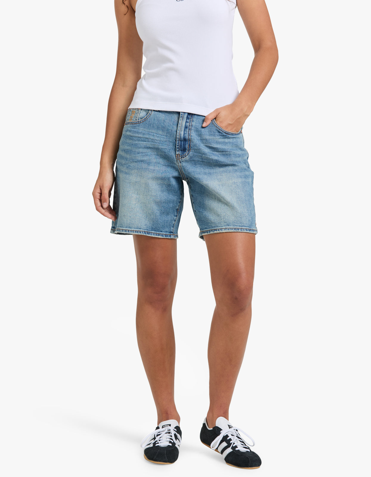Jackson Mid Waist Wide Leg Short - Texas Blue