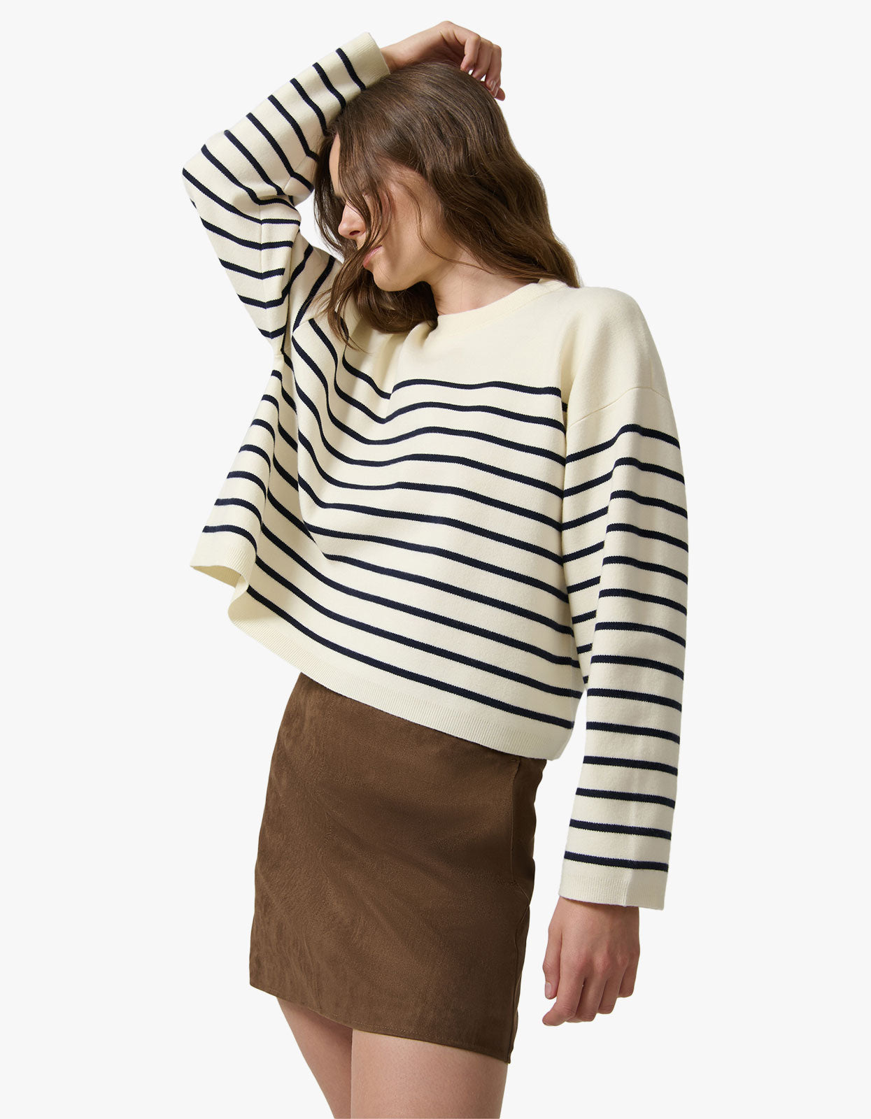 Indulge in the sophistication and exclusivity of our Marta Sweater in Navy Breton from Onte.