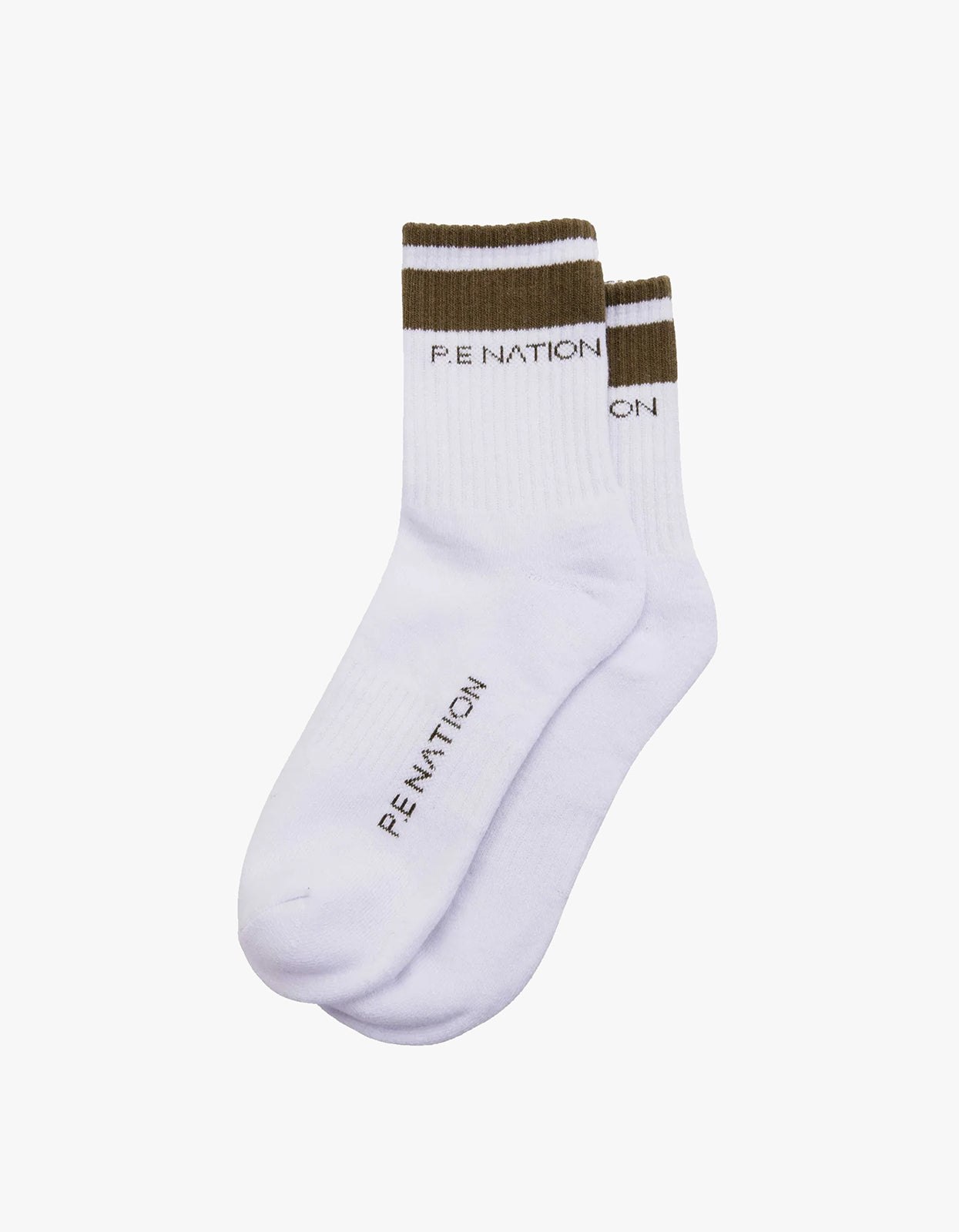 Indulge in luxury with Homage Socks in Khaki from P.E Nation.