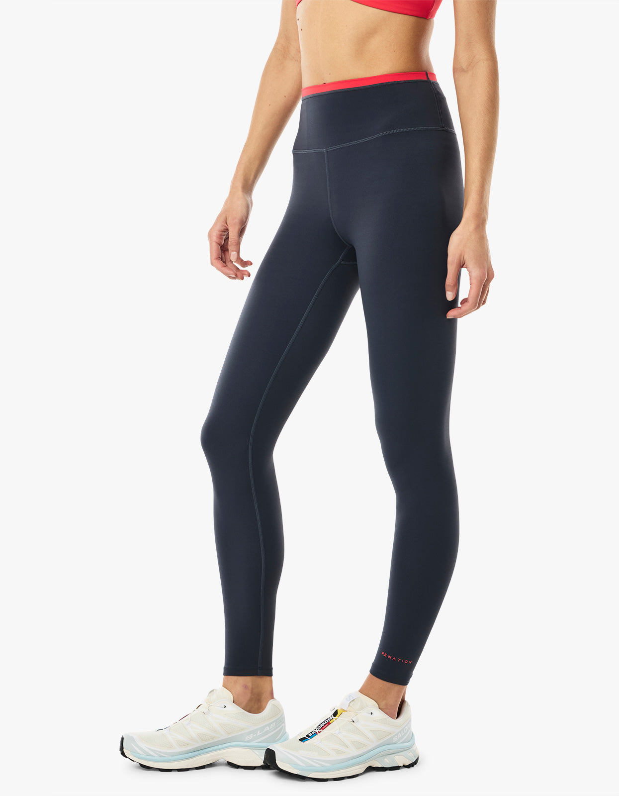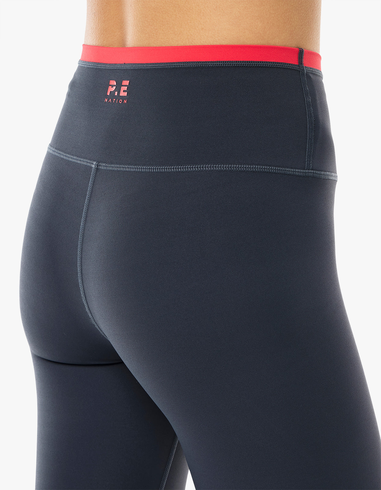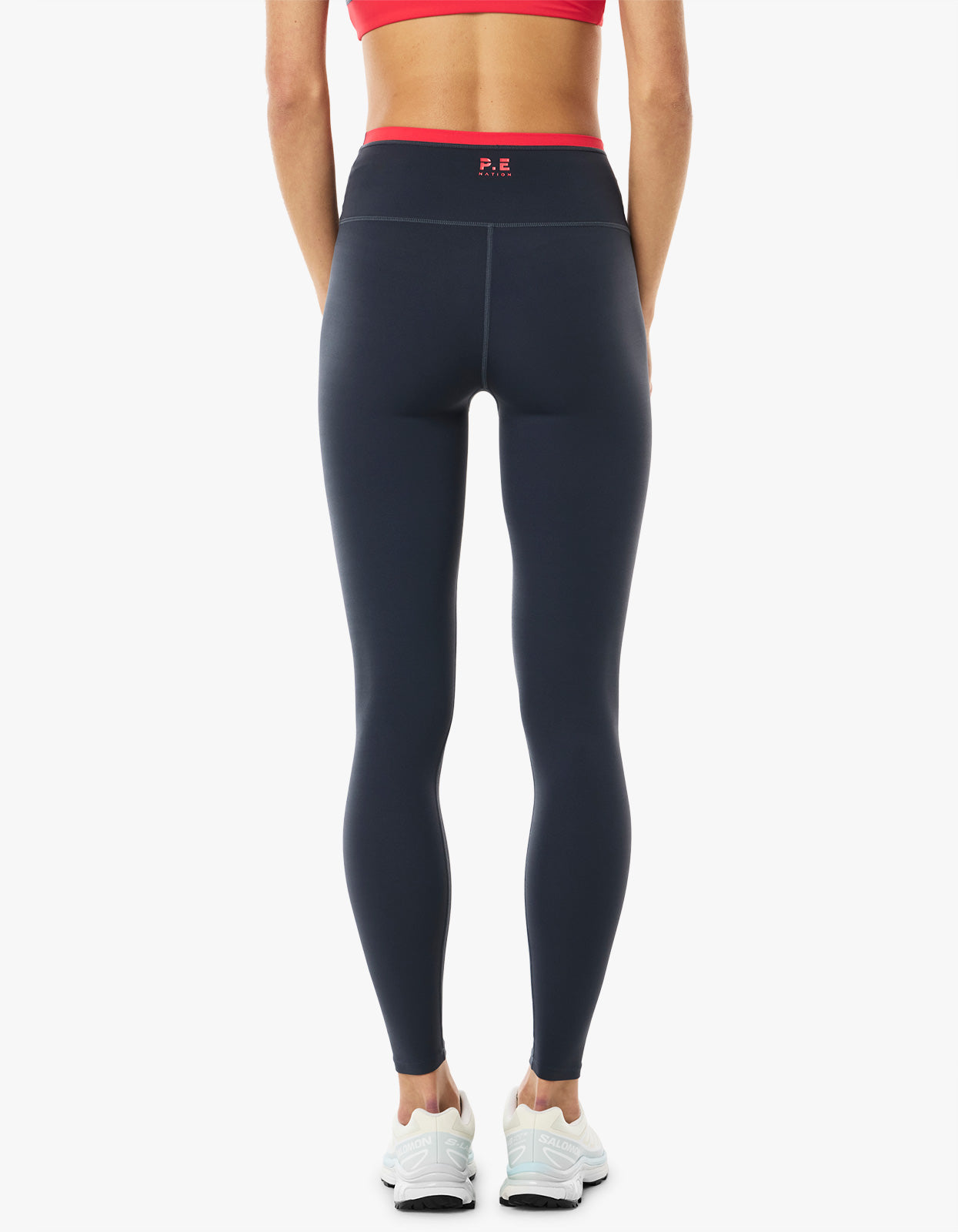 Elevate your activewear with P.E Nation's Vita Full Length Legging in Marine Blue, subtly accented with Strawberry Red.
