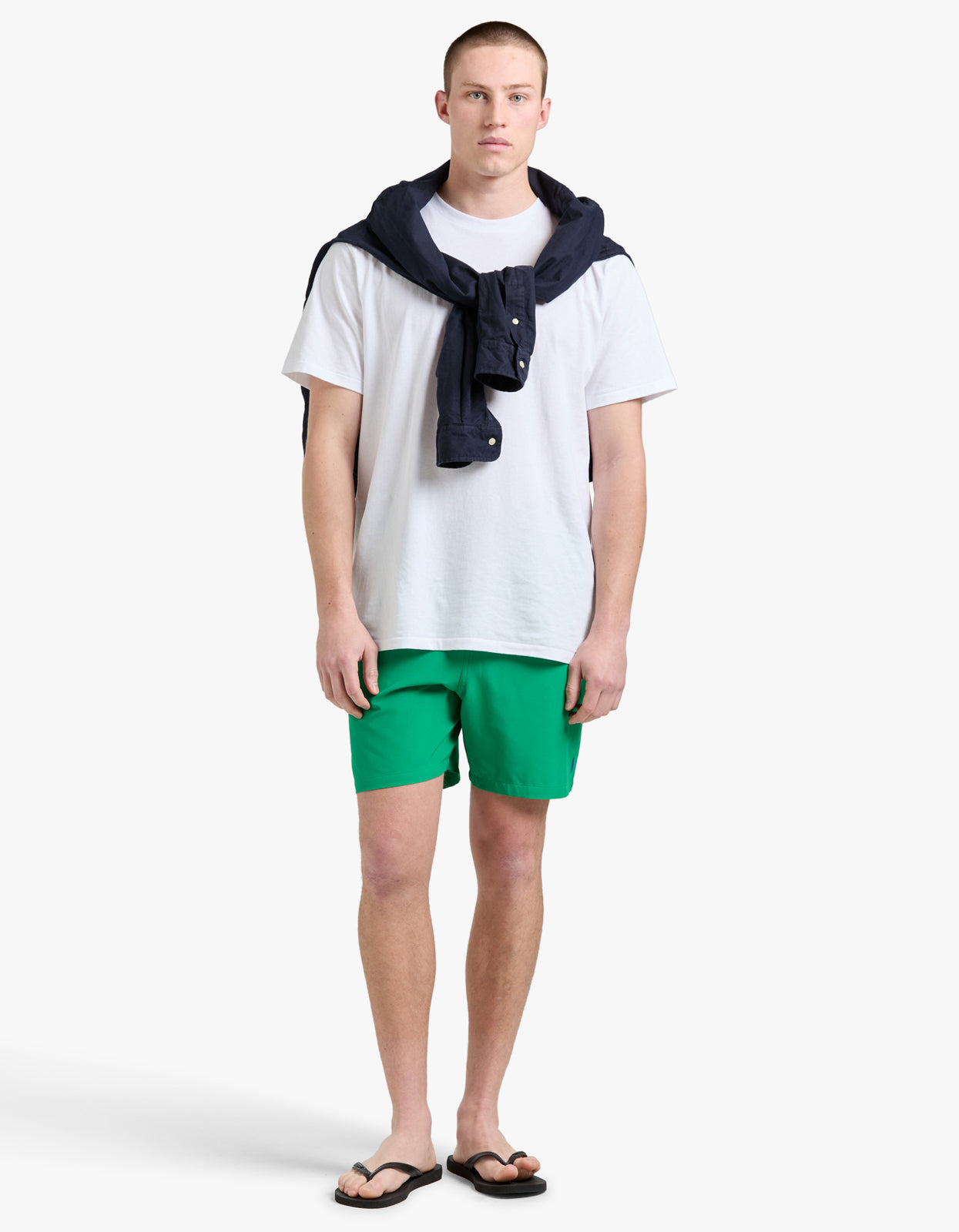 Crafted for comfort and versatility, these swim shorts features a normal rise and a sleek plain pattern. Its elasticated waist ensures a refined fit, while side and back pockets provide practical storage without compromising style. Perfect for active days or relaxed outings, this trunk balances functionality with a sophisticated, understated design.
