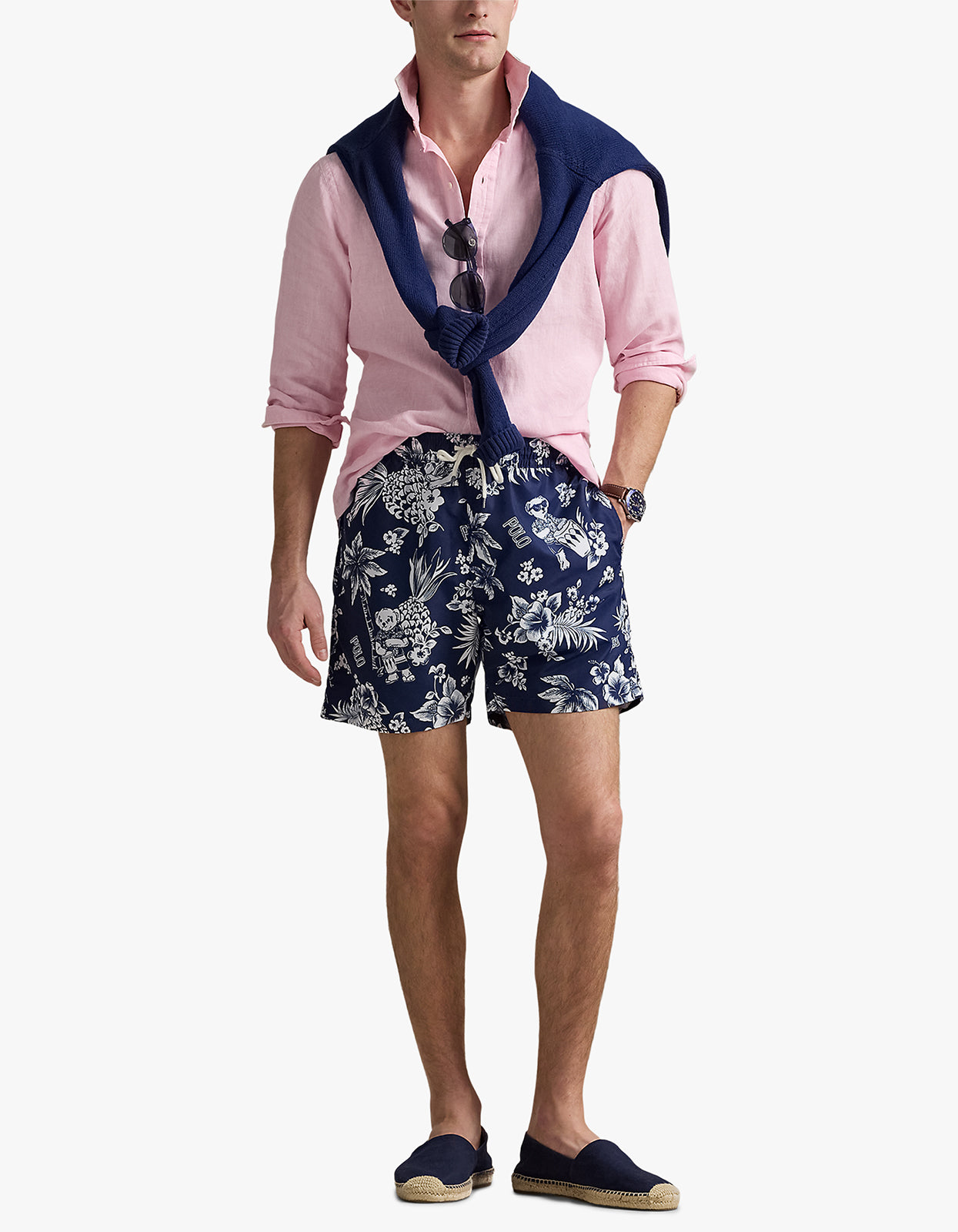- Allover tropical print with Polo Bear and logo