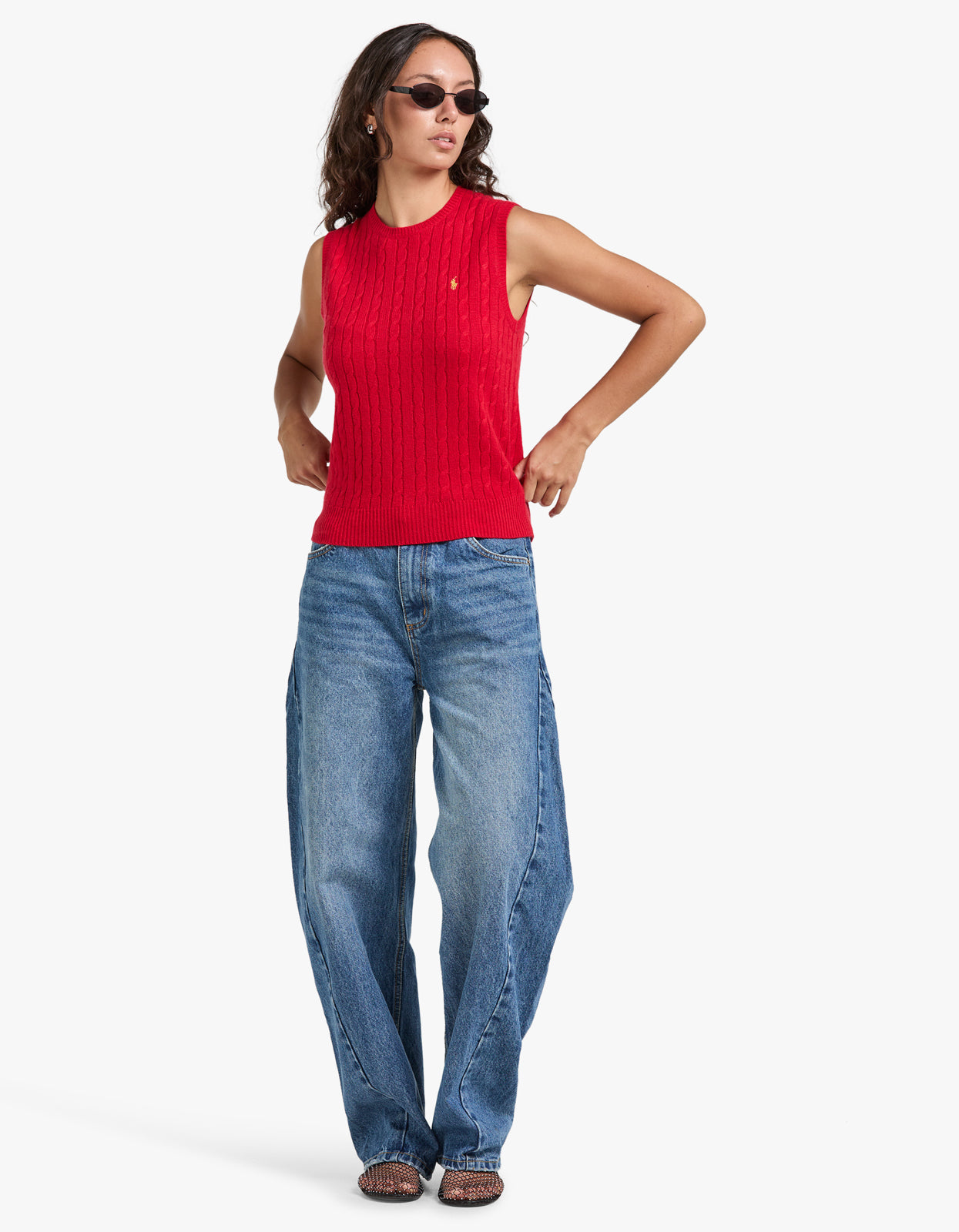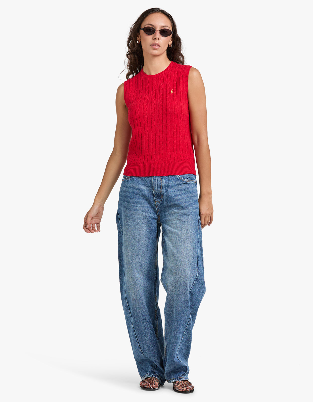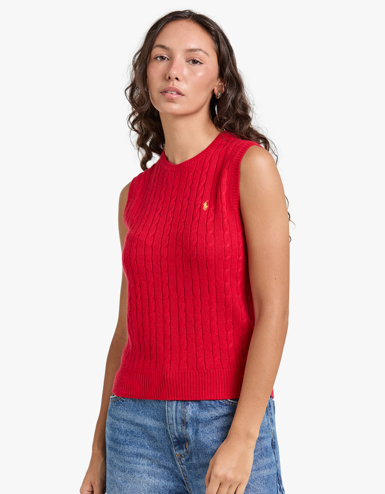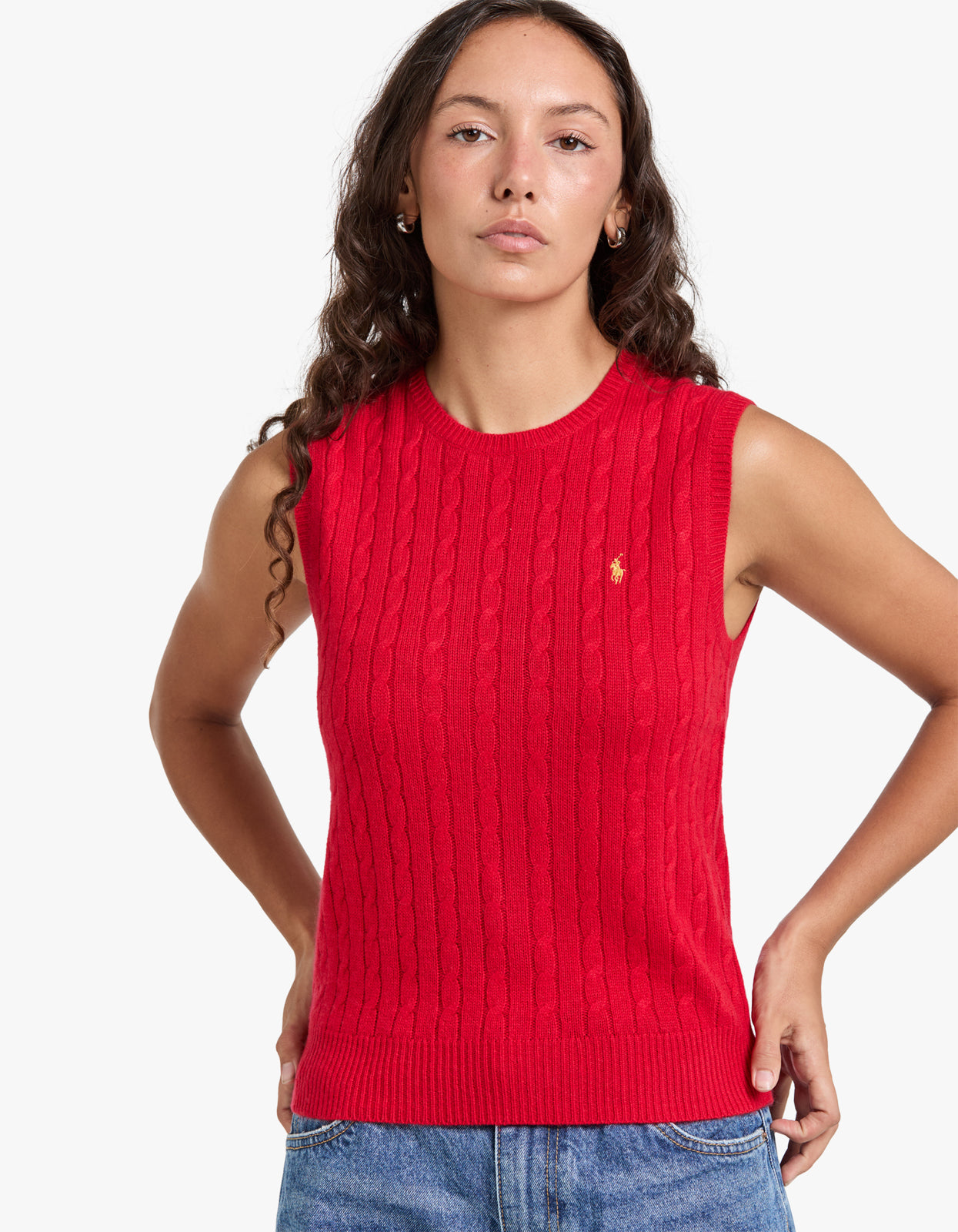 RedStep into the Lunar New Year with a burst of style and luck in this fabulous cable knit Sleeveless-Pullover vest from Polo Ralph Lauren!