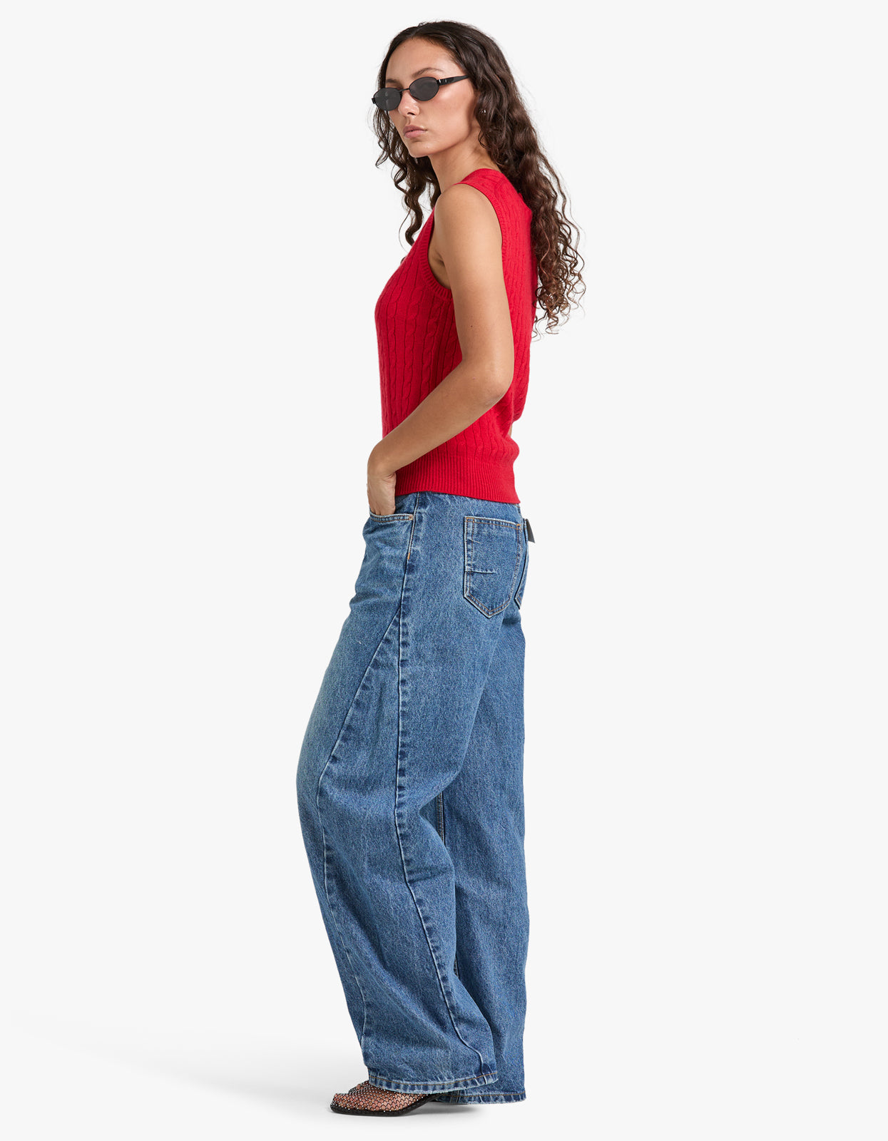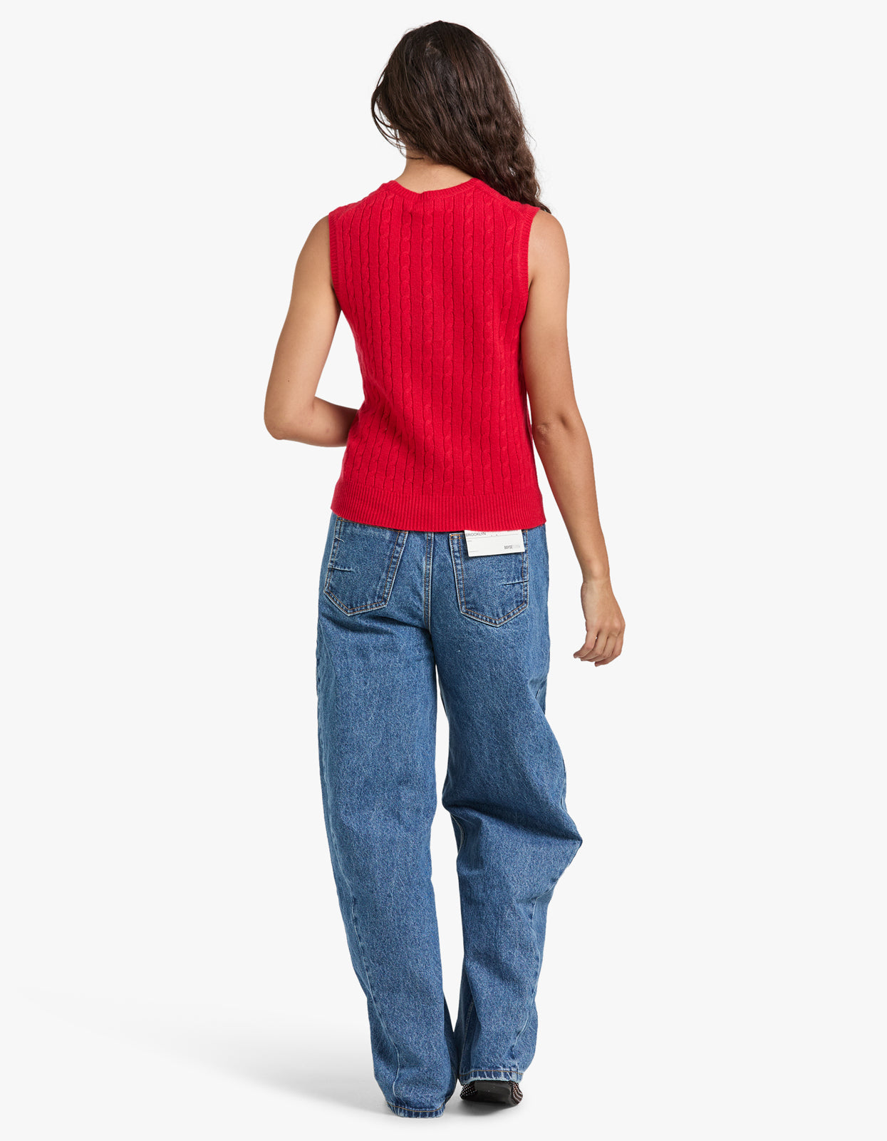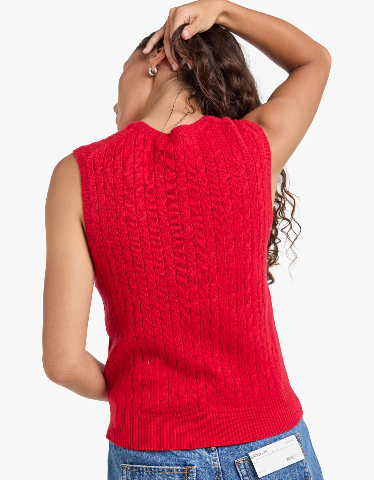 Cable Wool Cashmere Sleeveless Sweater - Red