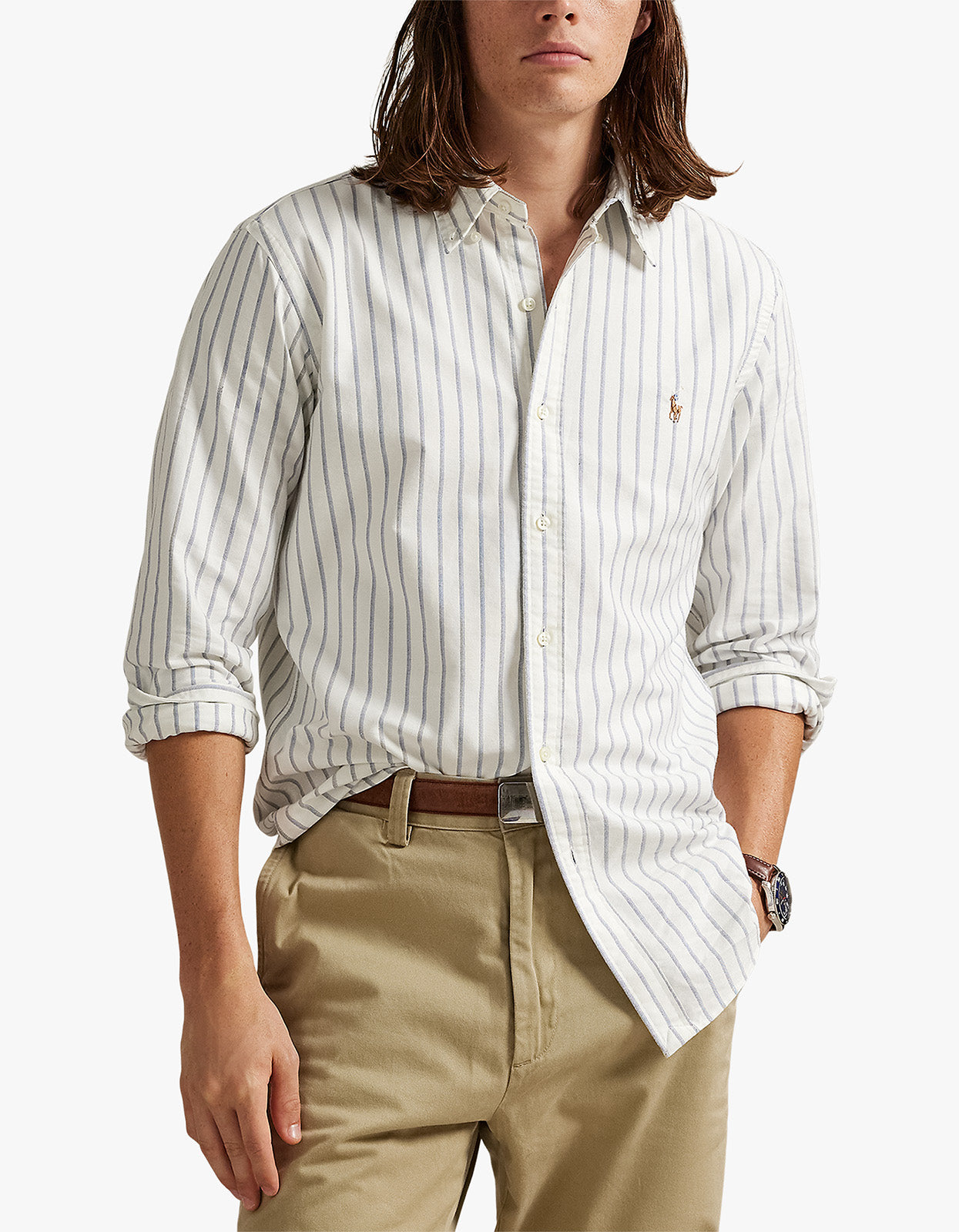 Style meets sophistication with our Custom Fit Long Sleeve Sport Shirt in White Blue from Polo Ralph Lauren.
