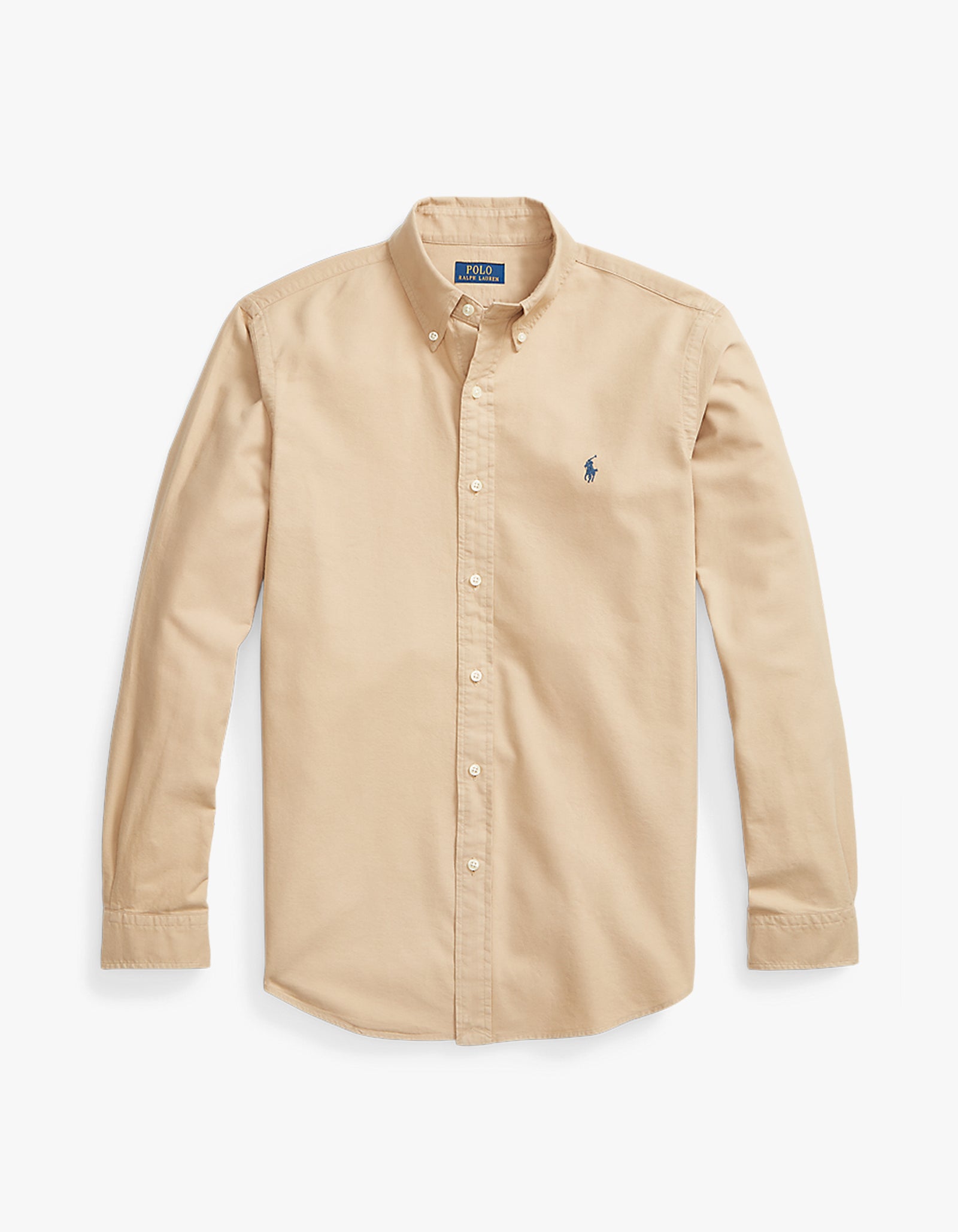 Elevate your wardrobe with our Polo Ralph Lauren Custom Fit Long Sleeve Sport Shirt in Surrey Tan.