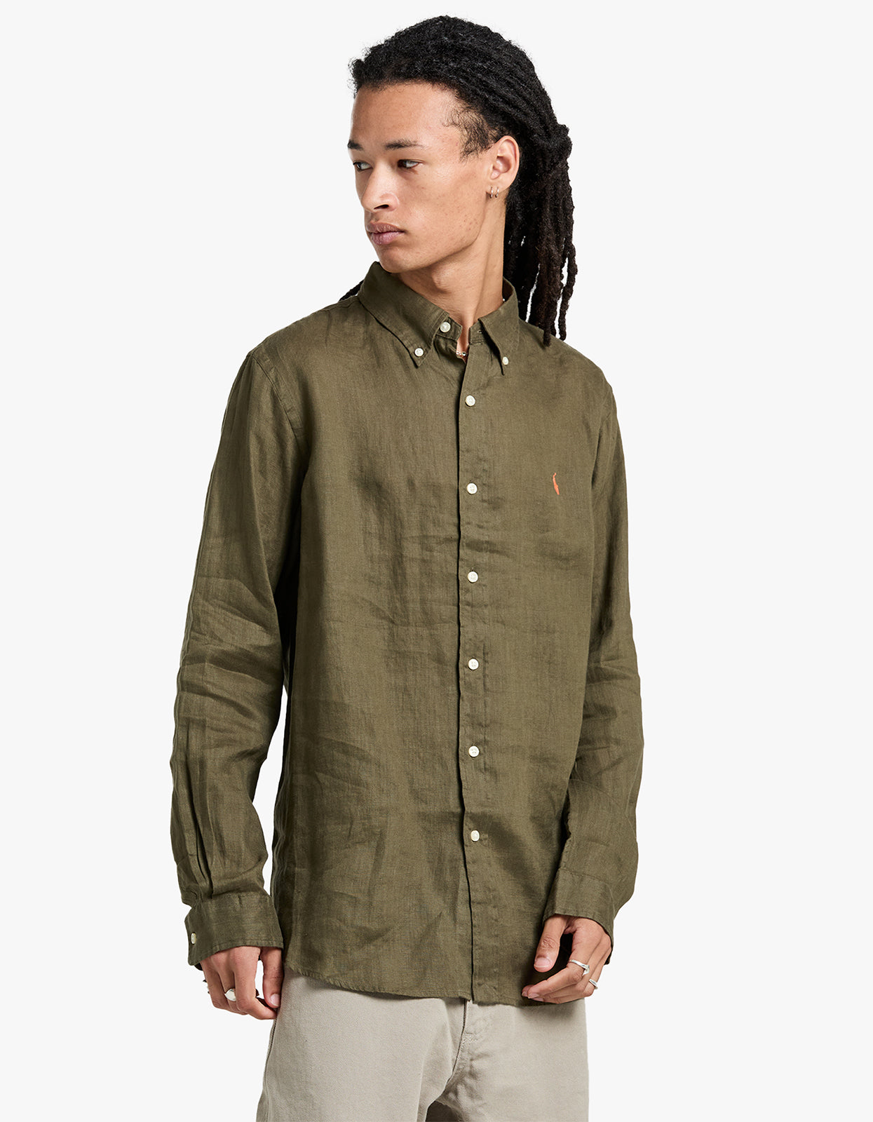 Featuring a button-down collar and button-up closure, this shirt exudes sophistication. Made with lightweight and airy linen, it's perfect for any occasion. Elevate your style and embrace the art of refined fashion.