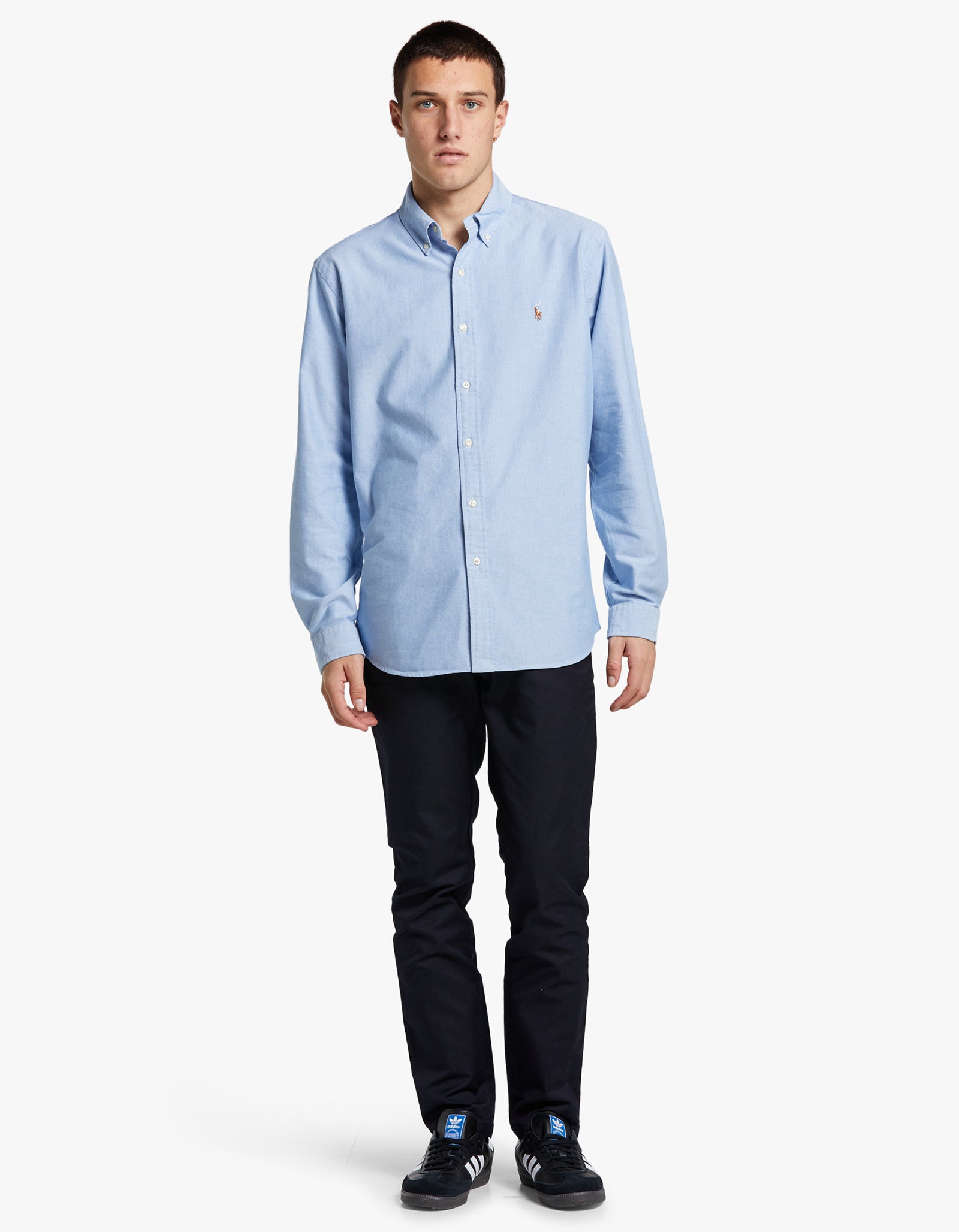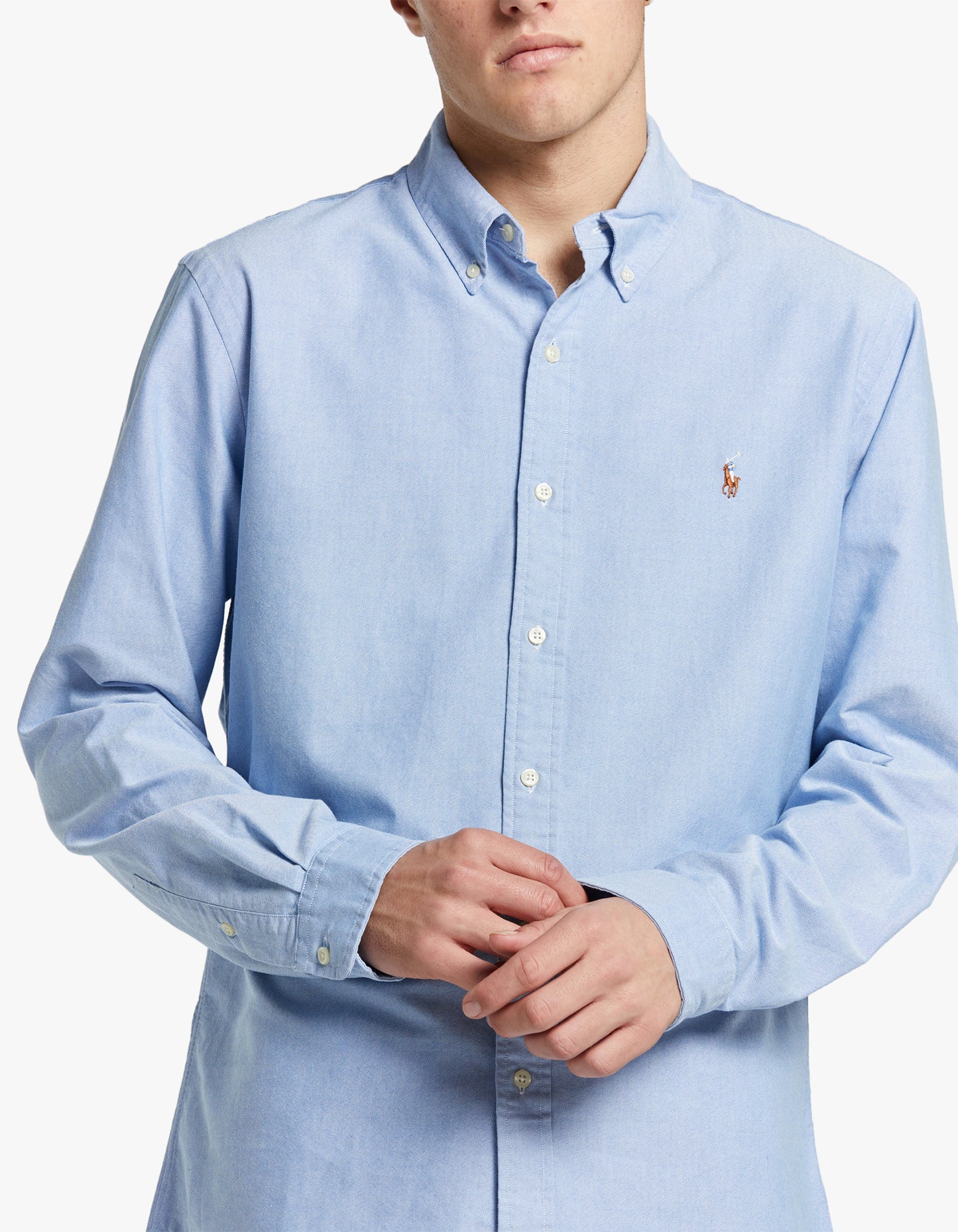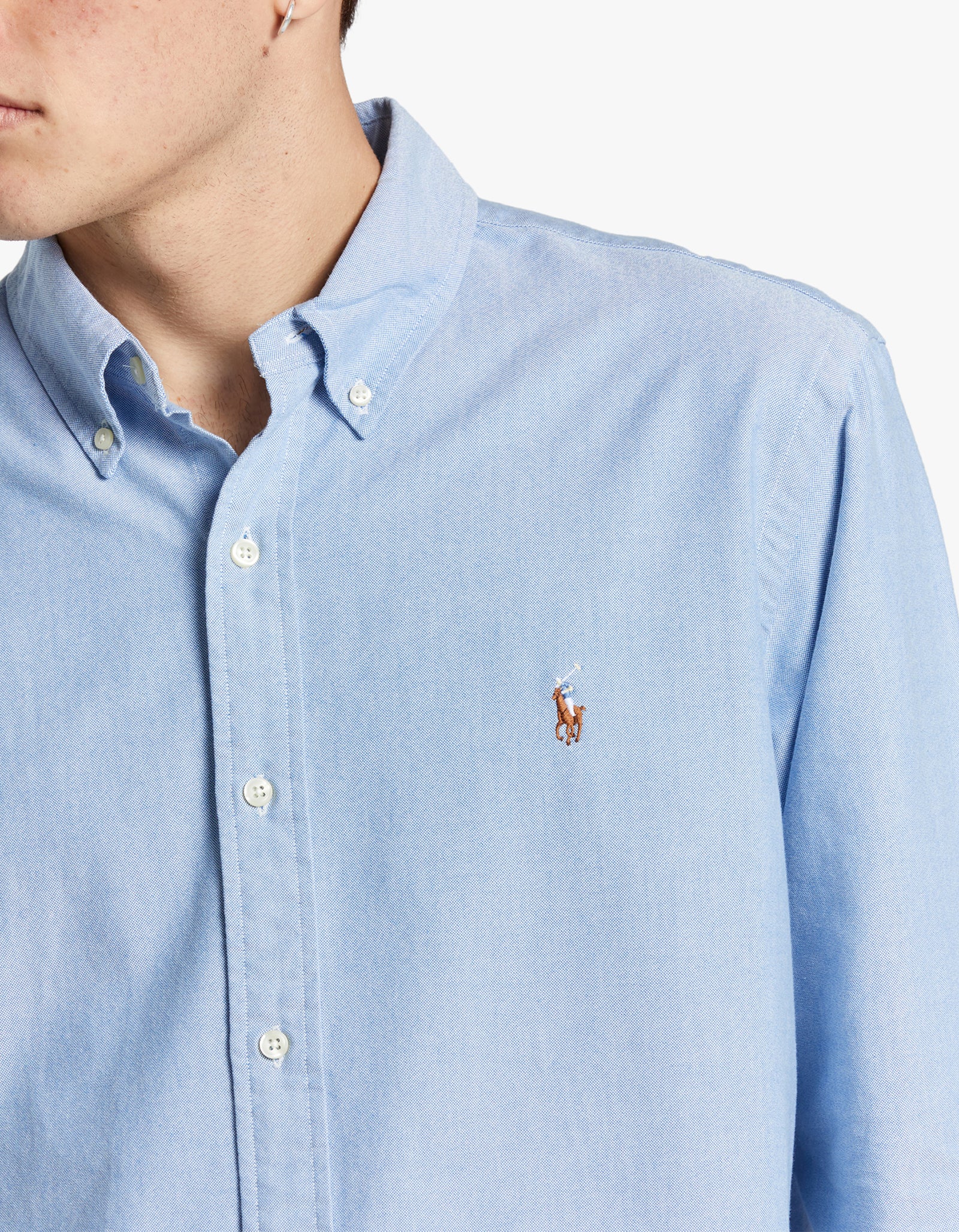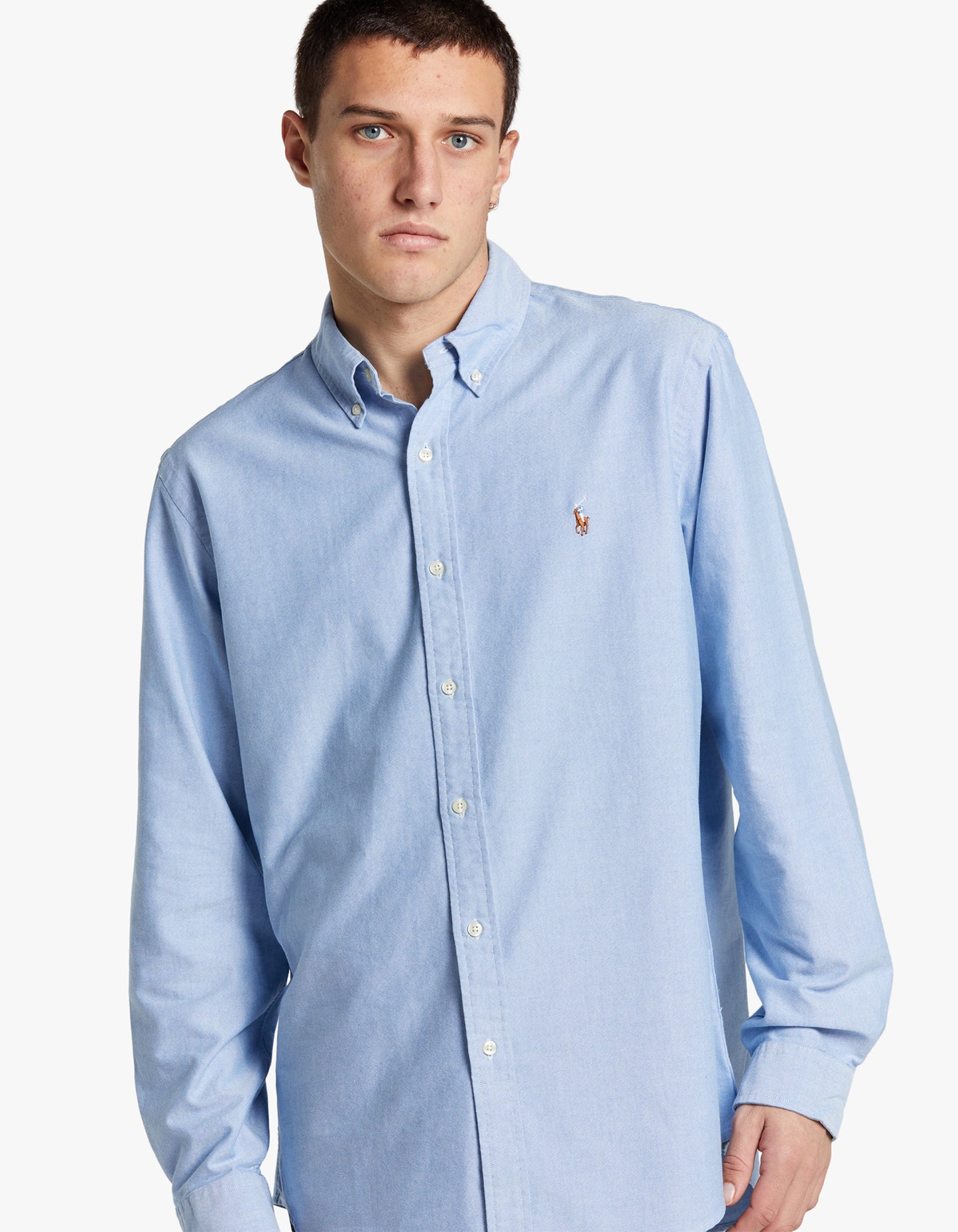 Minimal and sophisticated, the Custom Fit Oxford Shirt is an ideal way to bring a touch of luxury to your daily life. This classic button-down shirt features the Polo Ralph Lauren signature logo at the chest to complete the look.