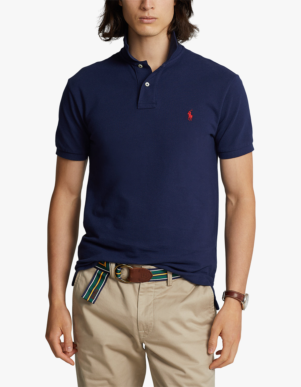 Experience timeless styling with the Custom Slim Fit Mesh Polo Shirt by Polo Ralph Lauren.