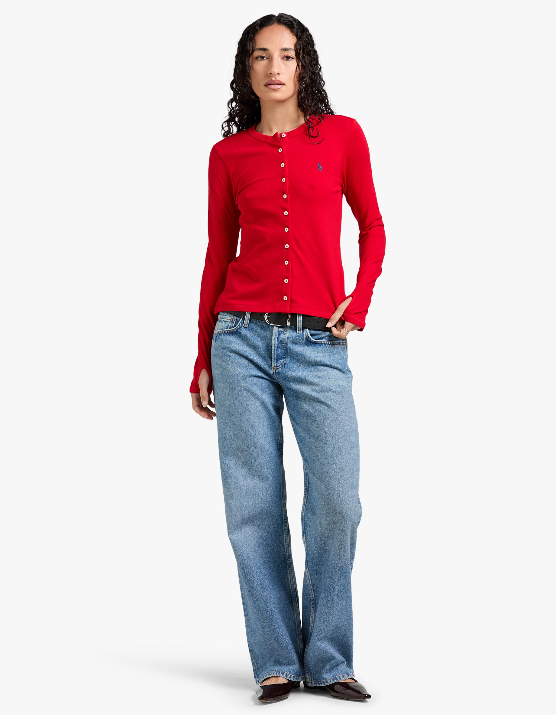 The Stretch Mesh Cotton Crewneck Cardigan is an effortlessly cool layer made from a lightweight, stretch-cotton blend. With a clean crew neckline, one-button cuffs, and the iconic embroidered Pony at the chest, it offers a sleek, slim fit that hits at the hip—perfect for elevated basics that move with you.