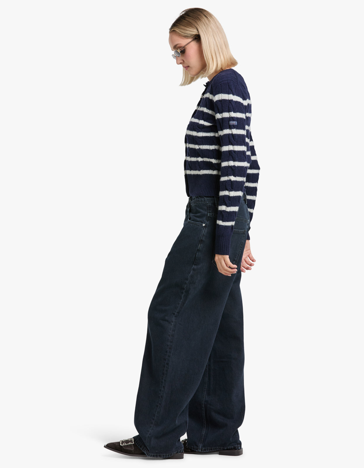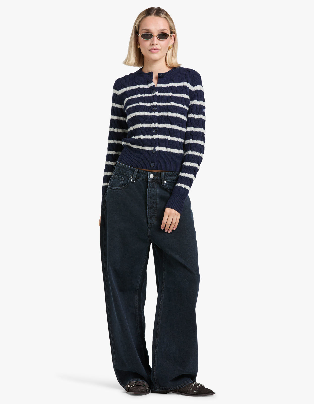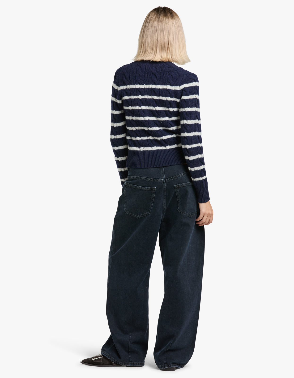 Striped Cable Wool Cashmere Cardigan - Hunter Navy/Authentic Cream