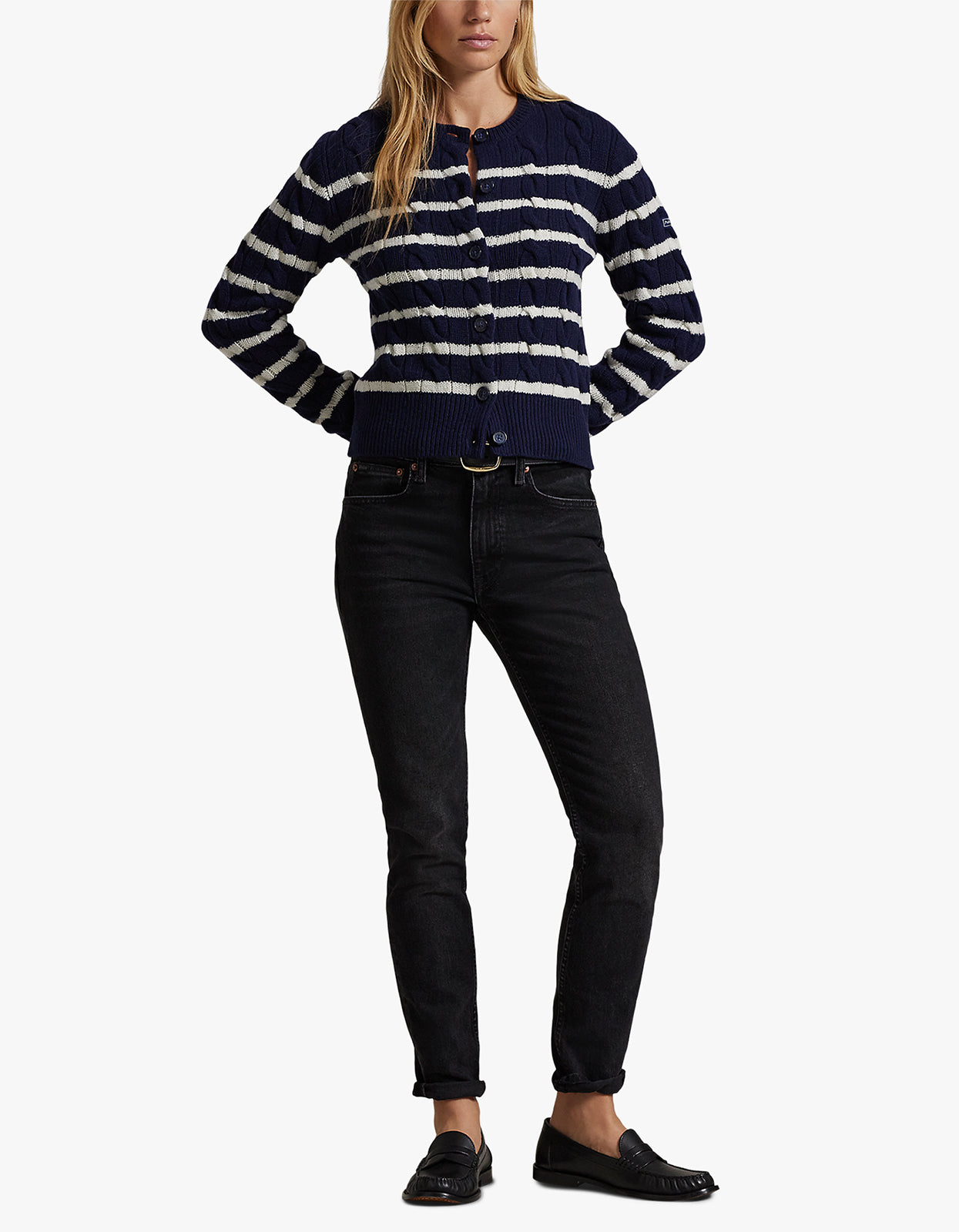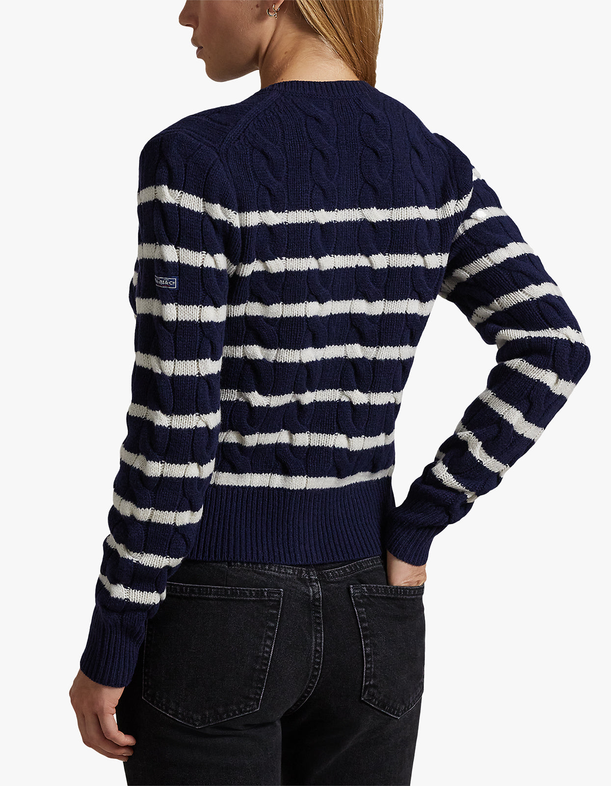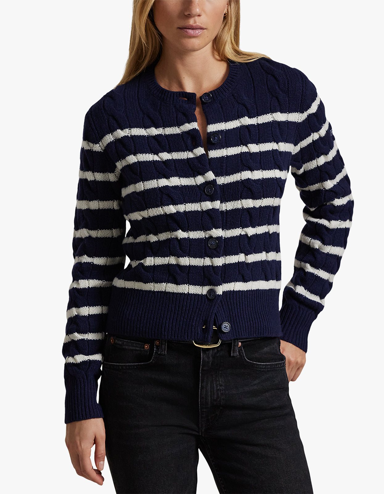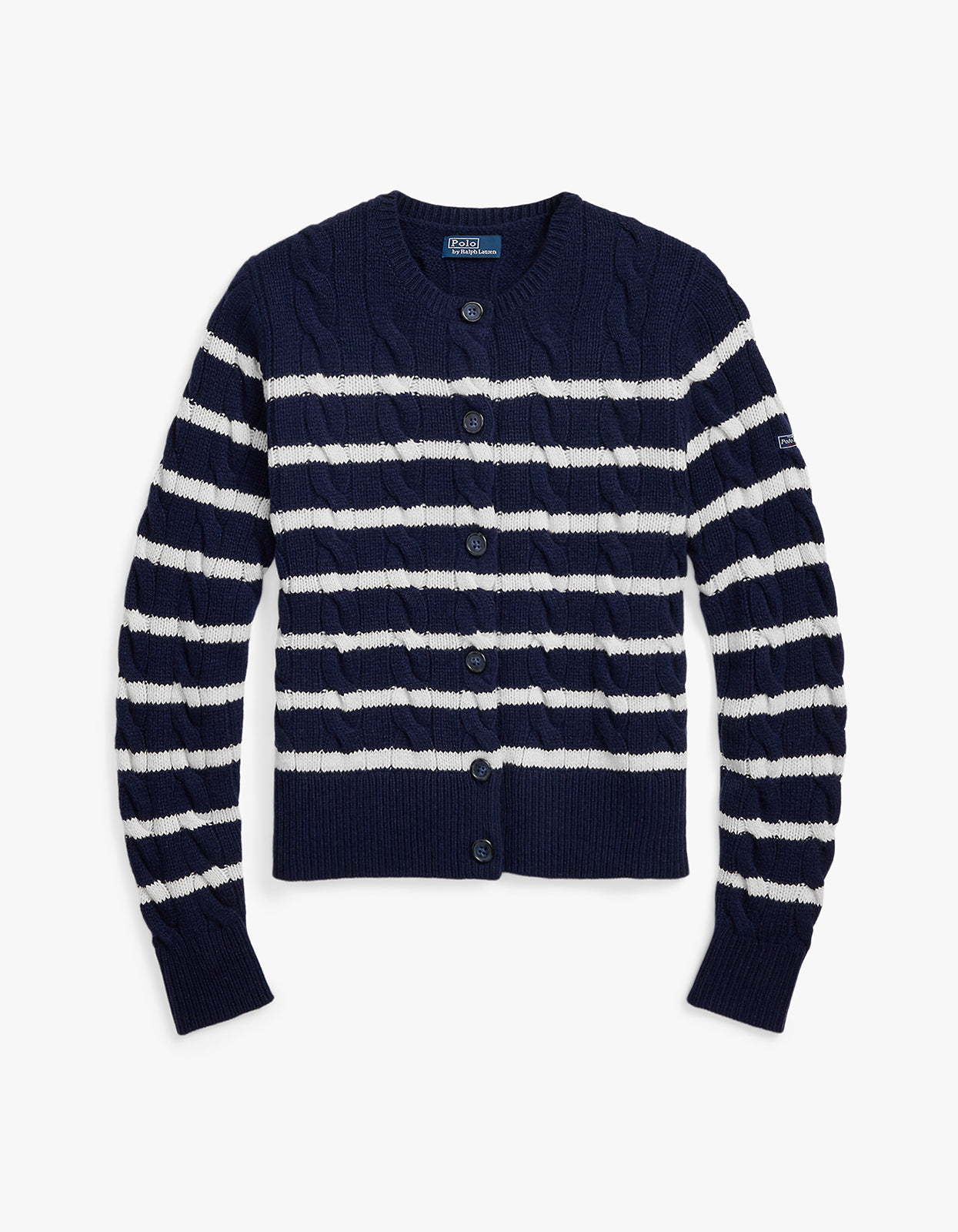 Indulge in luxury with our Striped Cable Wool Cashmere Cardigan by Polo Ralph Lauren.