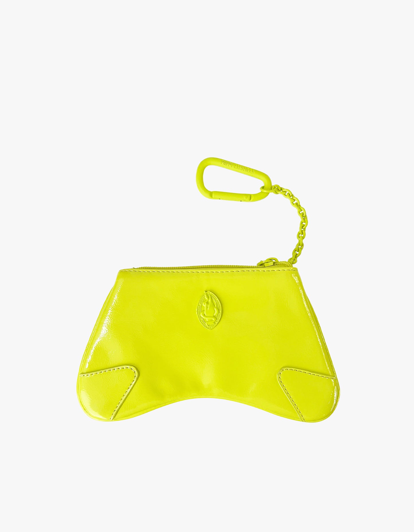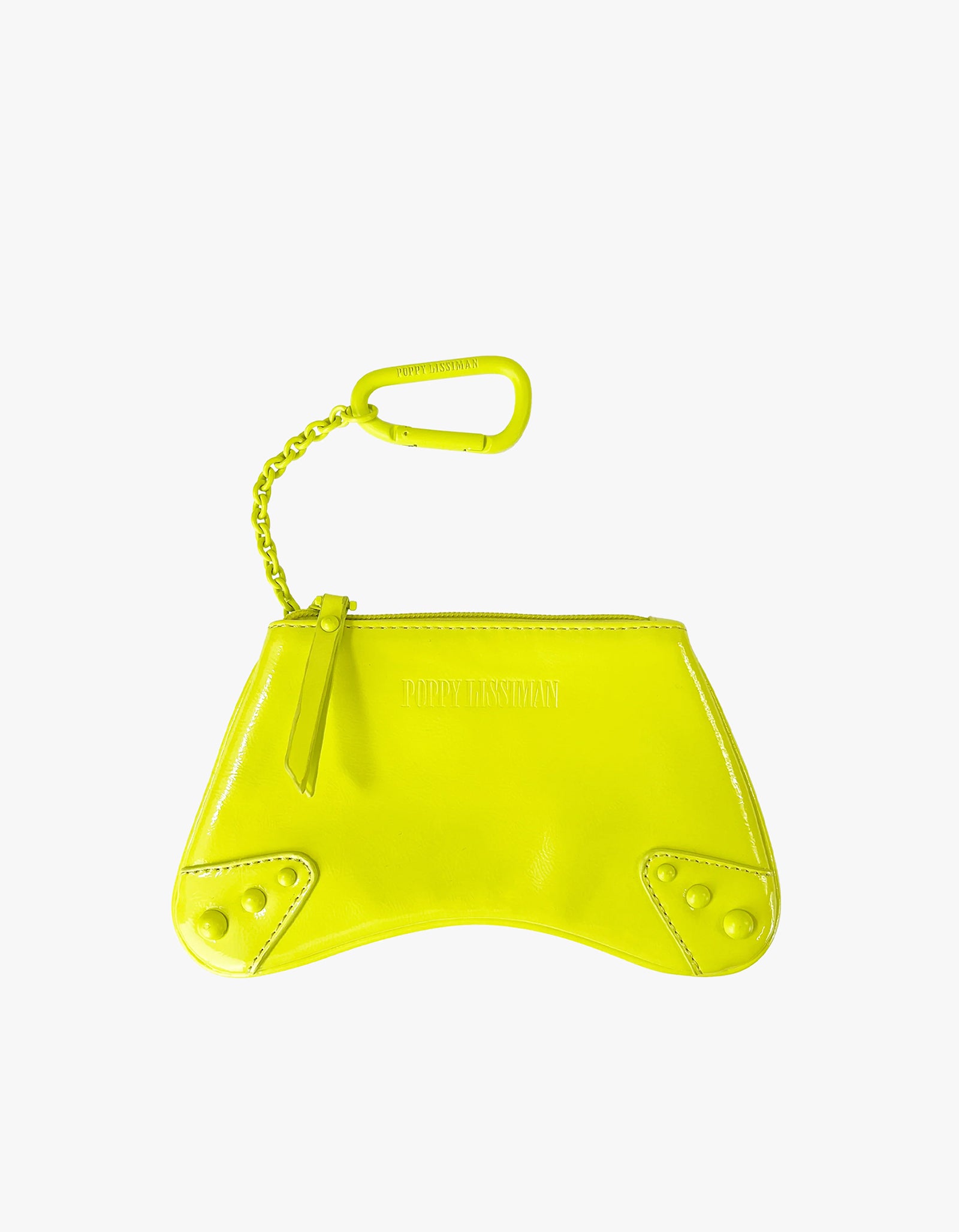 Wanting to add a statement piece to your outfit? Well this is the perfect addition for you. The Cosi Coin Purse is bright, fun and functional. This bag is based off the Poppy Lissiman Merlin Bag. It is a perfect 'on the go' purse made from high-quality crinkle patent lime faux leather with powder lime coated metal studs, chains and carabiner. Be sure to elevate your outfit with this new addition.