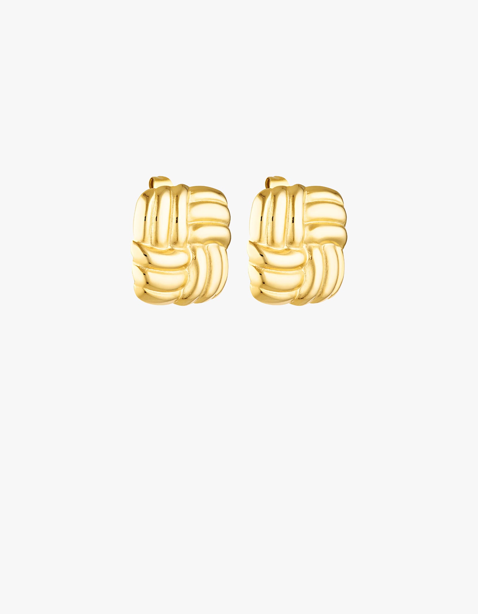 These elegant gold earrings feature a unique cushion design, perfect for adding sophistication to any outfit. Treat yourself or a loved one to these exclusive earrings that will elevate any style.