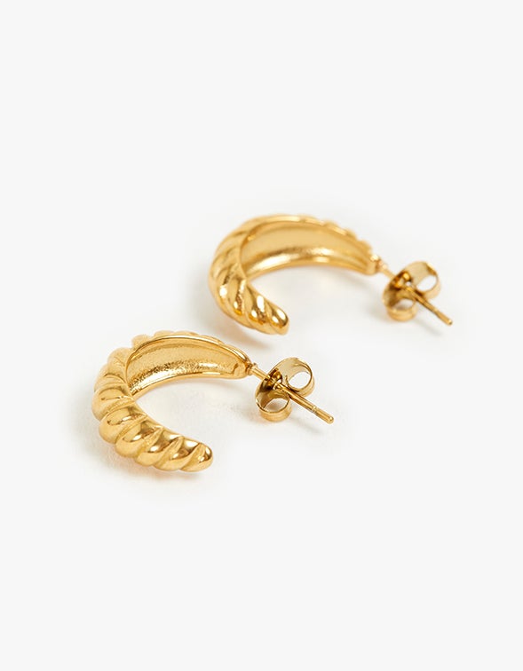 These delicate earrings are incredibly lightweight and perfect for everyday wear. These will never be taken off. The Croissant Earrings have a butterfly back so they are easy to take off and on.