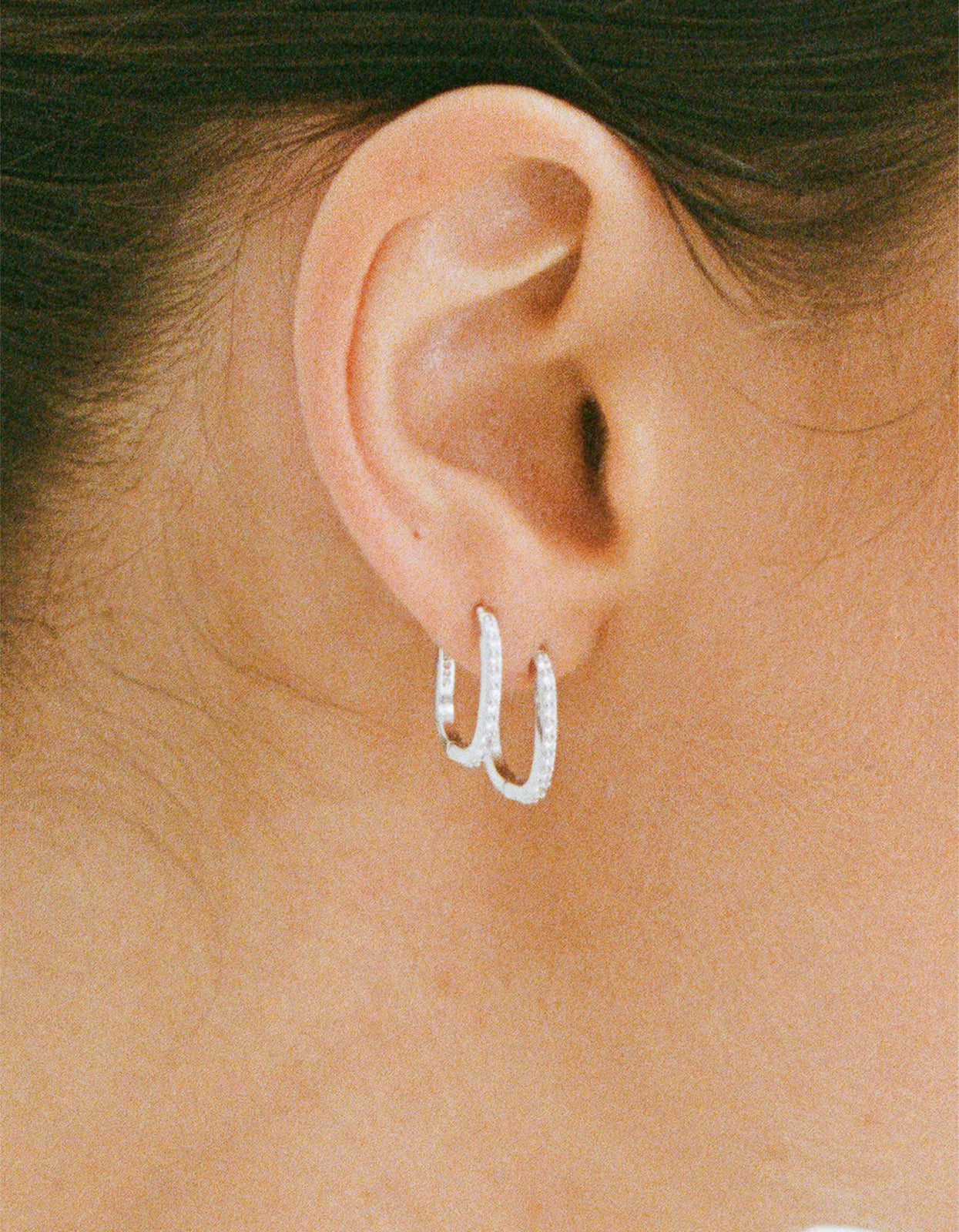 These huggies earrings feature delicate cubic zirconia along the front for subtle everyday sparkle and refined simplicity. As the original waterproof jewellery brand, all Porter pieces are designed for real life — crafted to be worn in the shower or from day to night with confidence.