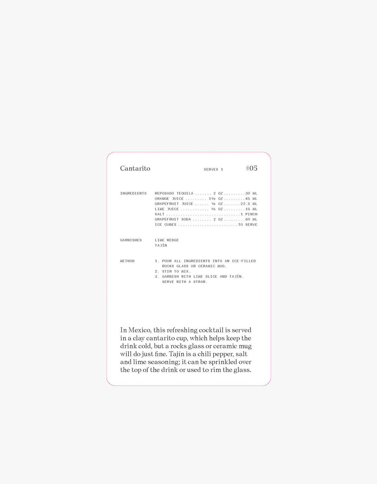 From classic margaritas and tequila sunrises to palomas, el diablos, and bloody marias, this beautifully illustrated deck celebrates the smoky, vibrant world of tequila and mezcal. Whether you're mixing up an Oaxaca old fashioned or enjoying a lazy siesta cocktail, you'll find easy-to-follow recipes complete with guides to garnishes, glassware, ice, and syrups—perfect for budding mixologists and bartending experts alike.
