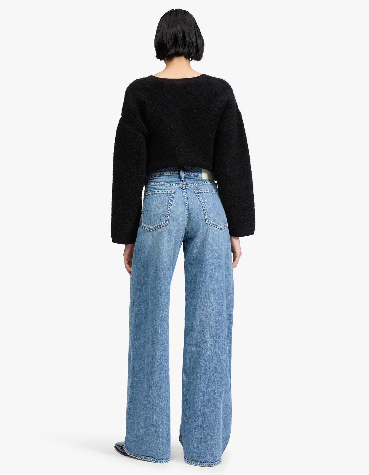 Crafted in ultra-soft Featherweight denim, this pair of jeans is all about that effortless silhouette- high-rise through the waist with a wide leg that moves just right.