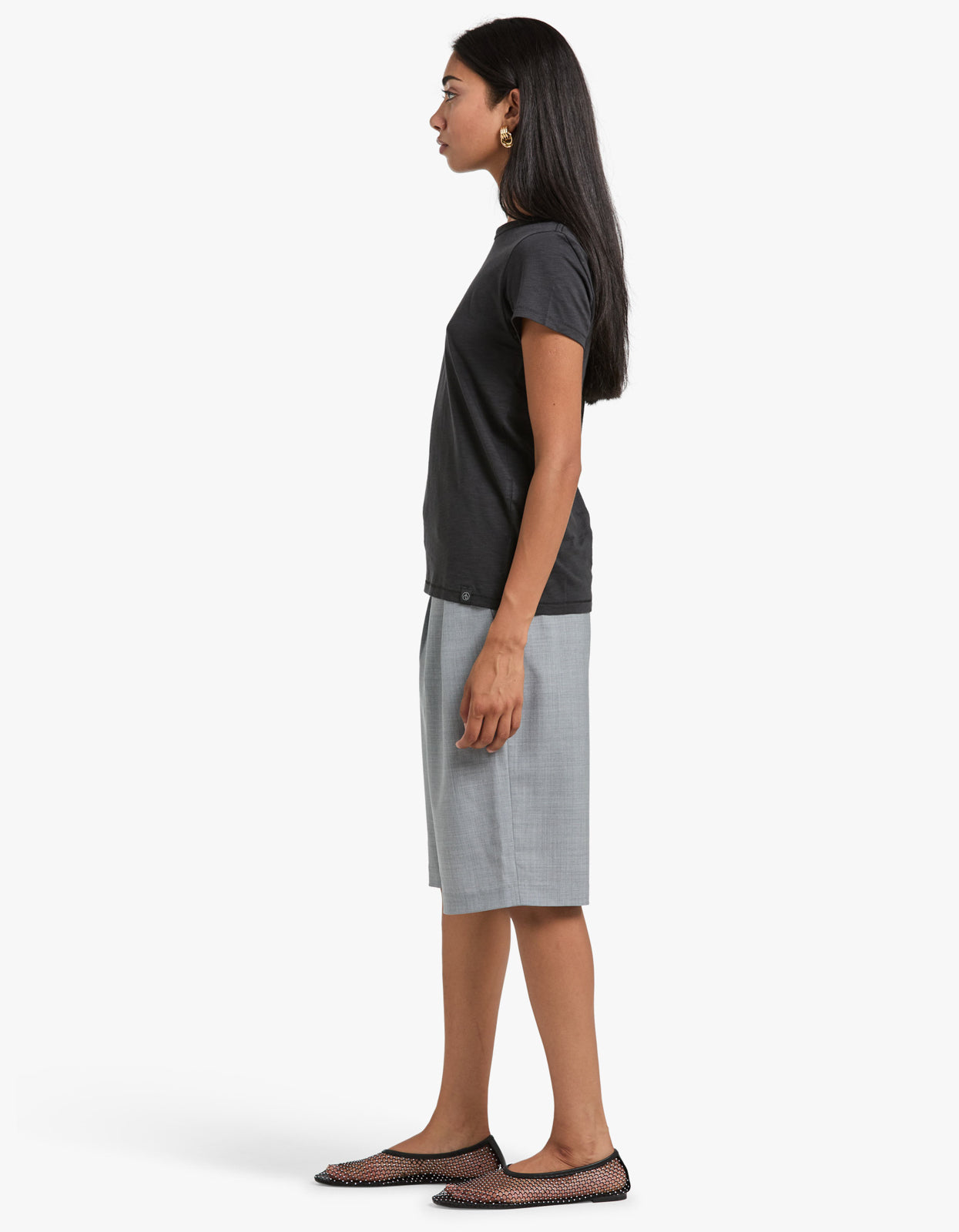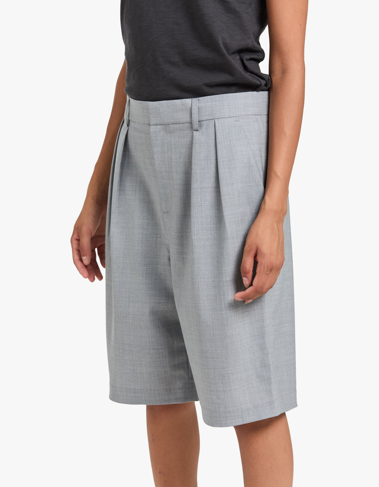 Introducing Rebe's stylish and functional Double Pleated Shorts in Light Grey.
