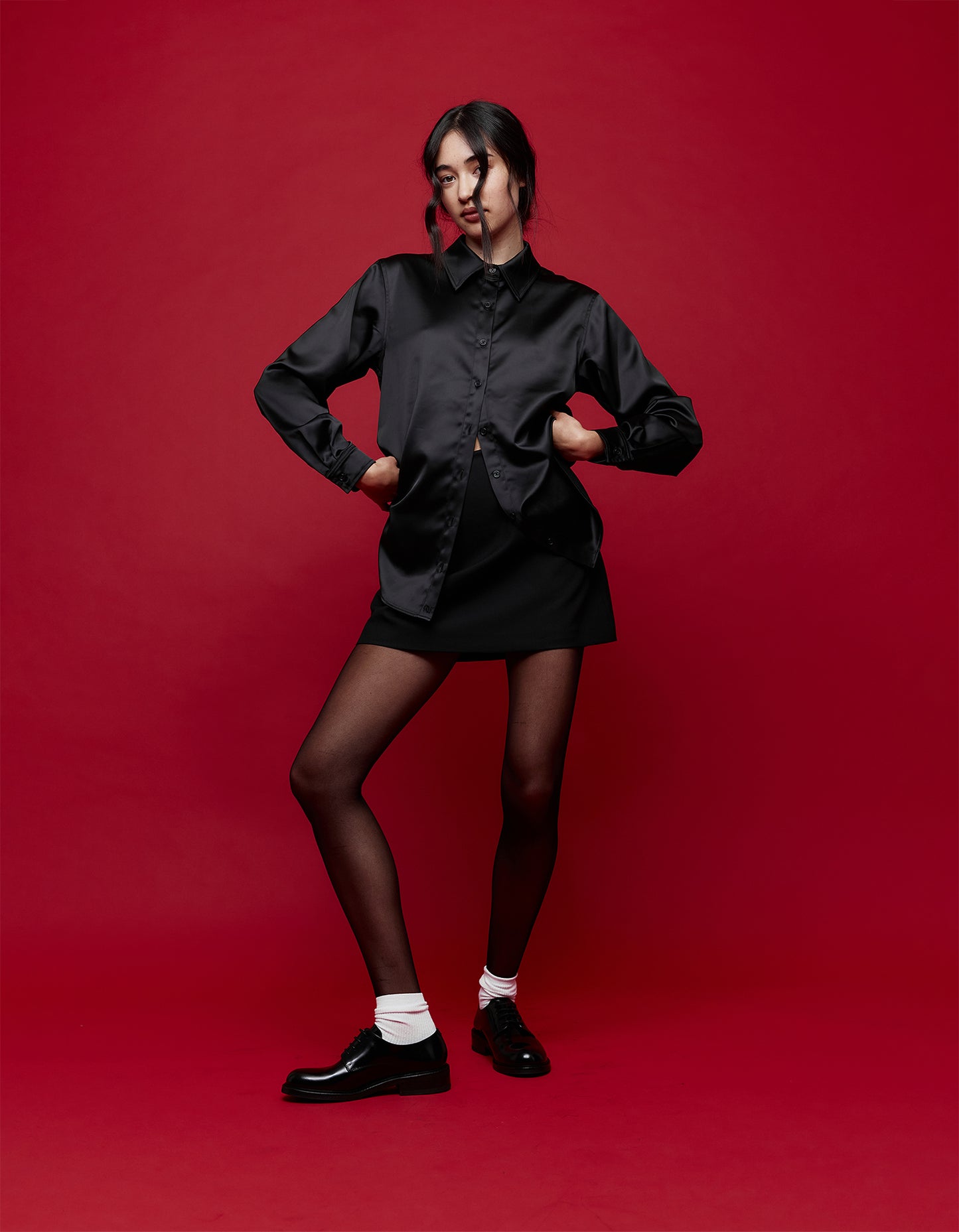 Indulge in luxury with the Rebe Mini Skirt in Black.