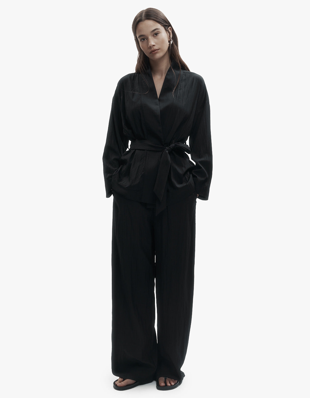 - Relaxed wrap silhouette