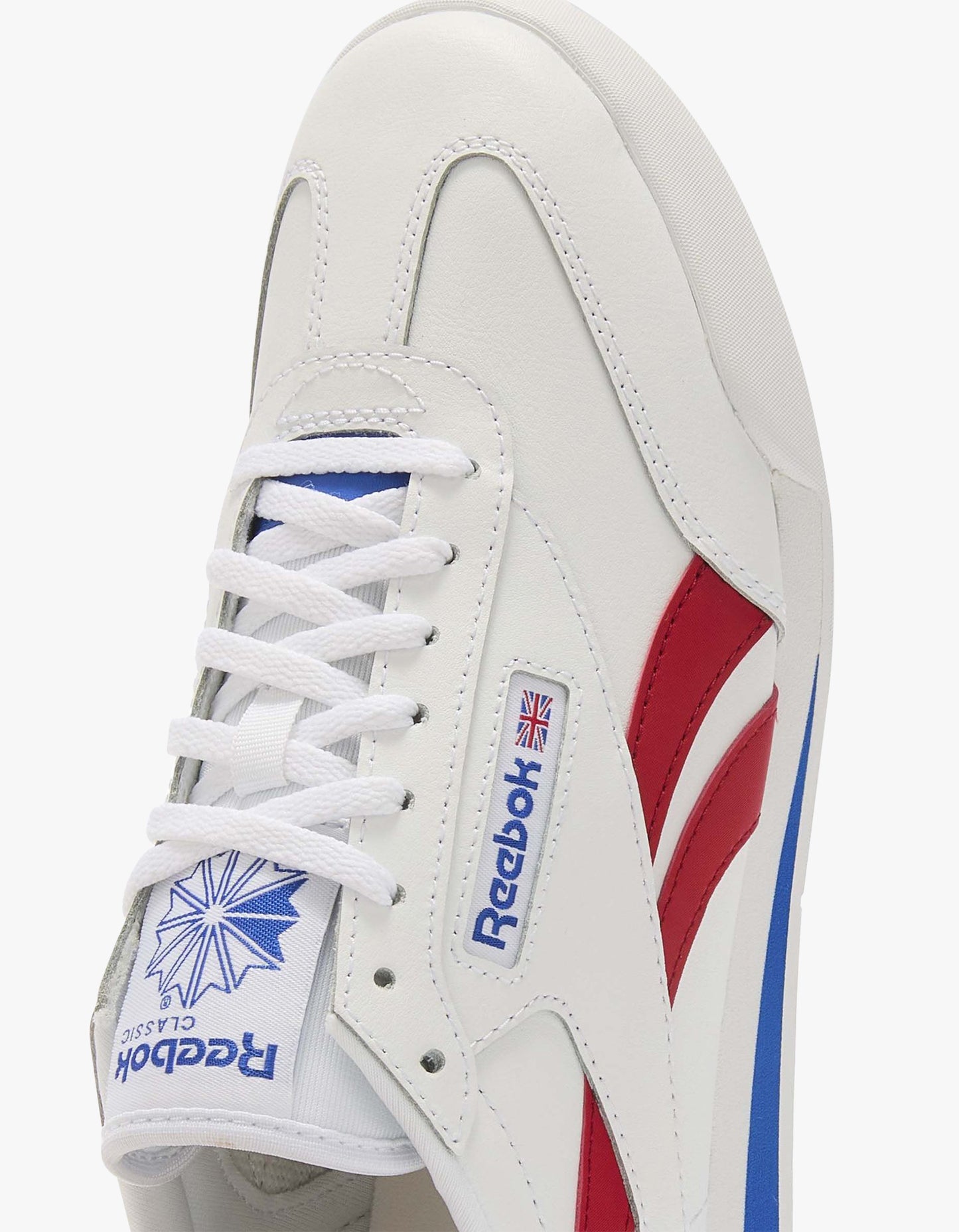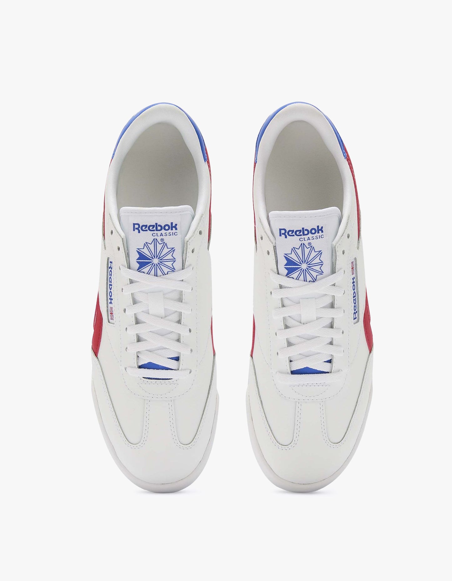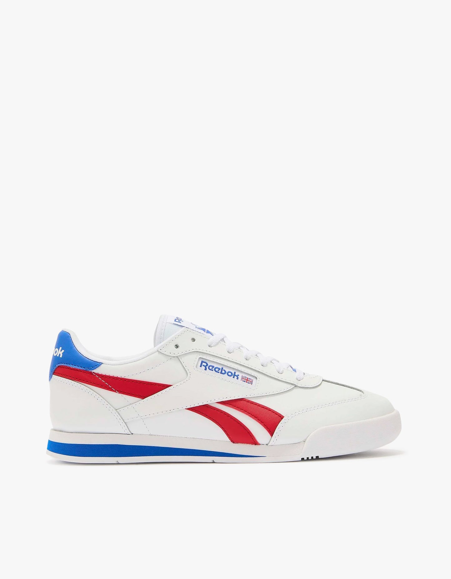 The Reebok Mens Campio XT sneaker - White/Vectorred/Optimum Blue is the perfect blend of vintage style and modern flair.