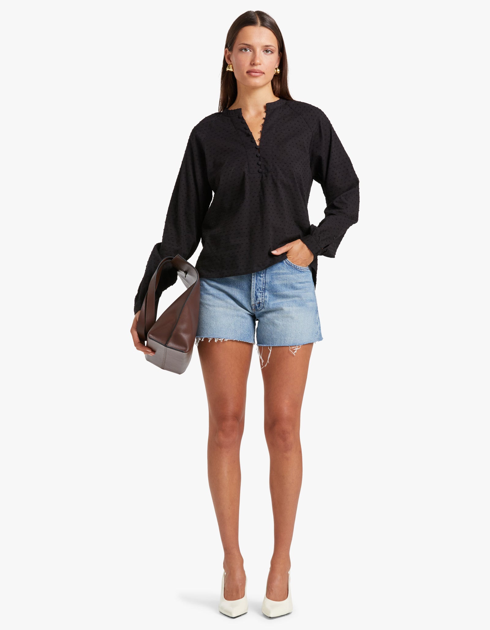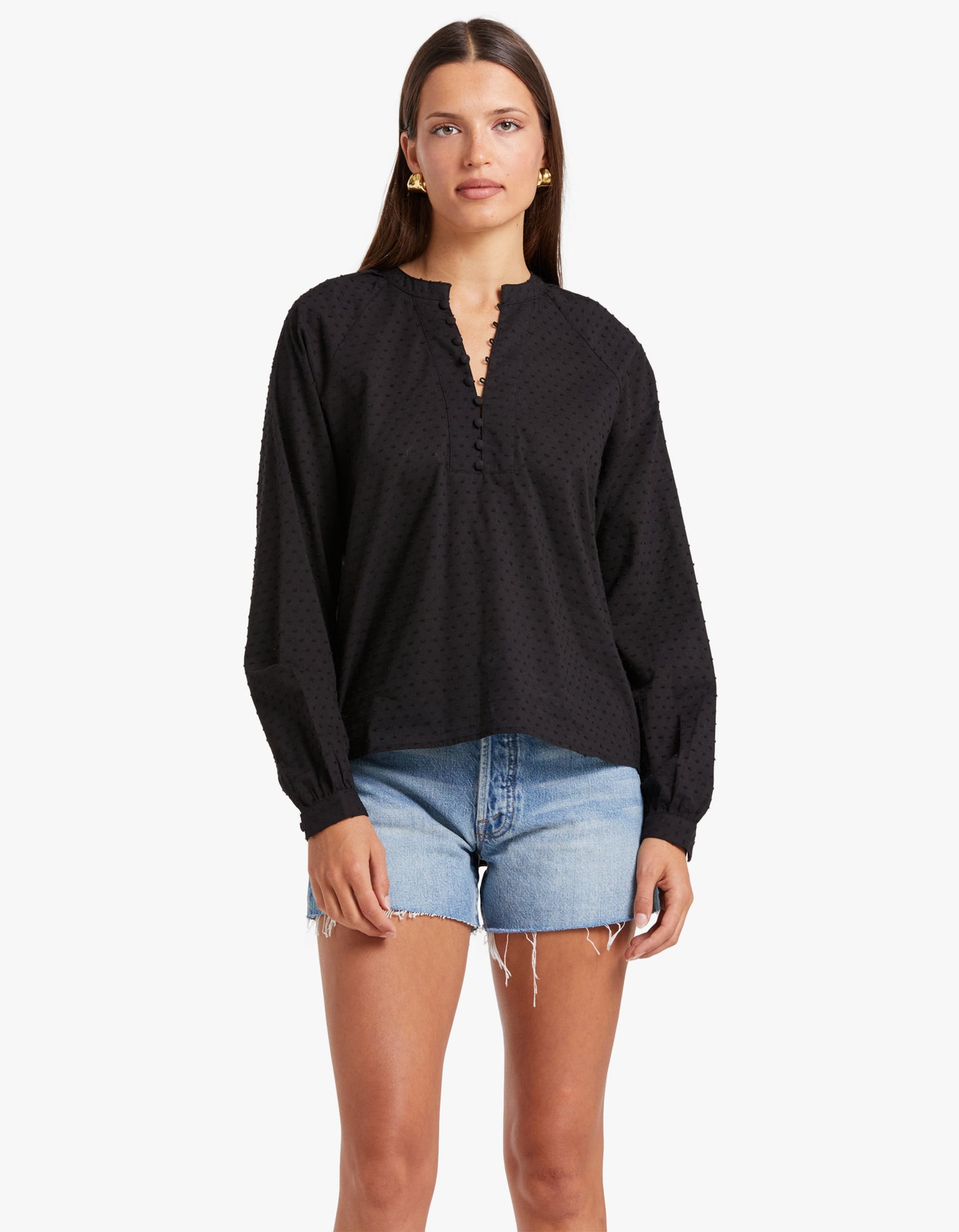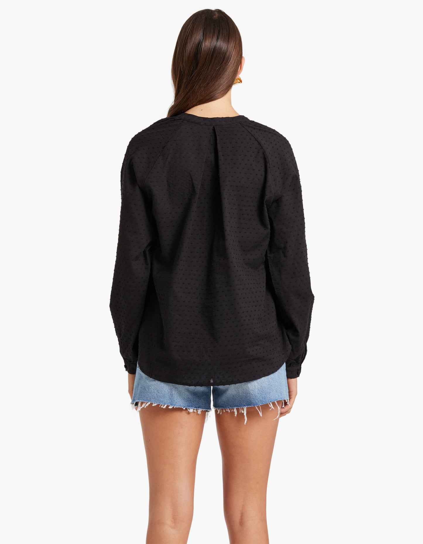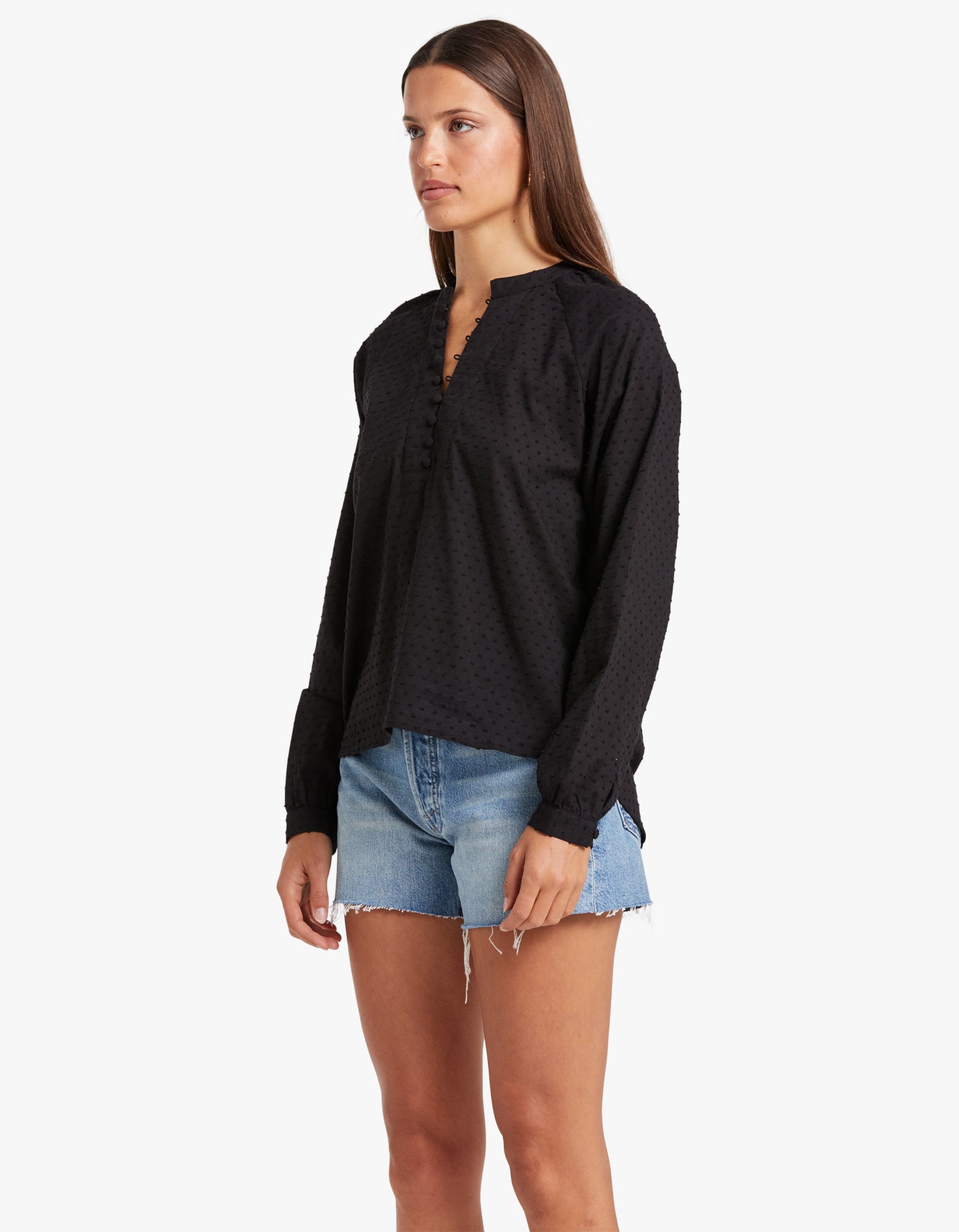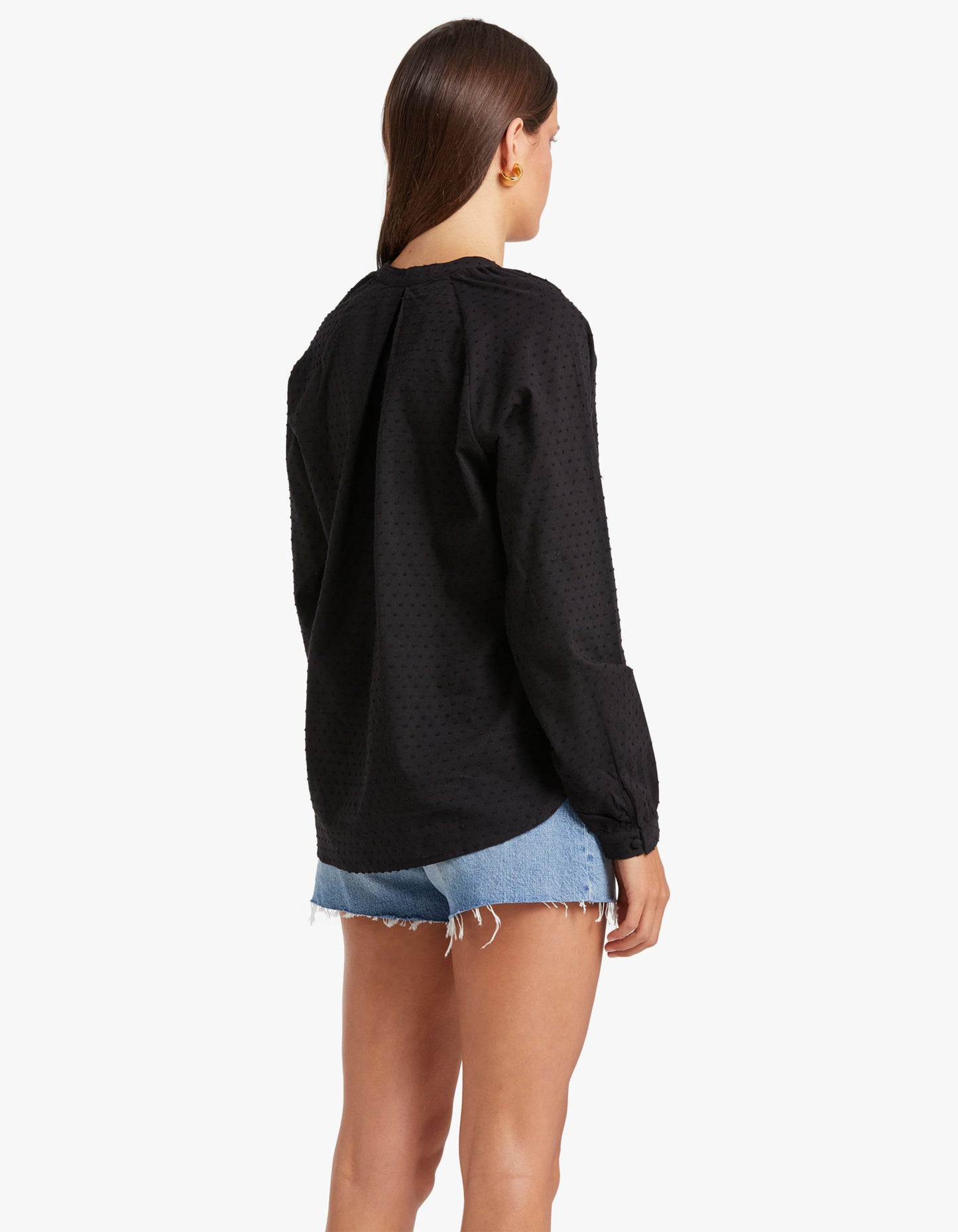 New Zealand brand Remain presents the Laycie Blouse, crafted from a textured swiss dot fabrication and detailed with a v-neckline - refresh your wardrobe with this elevated style. Simply pair with a tailored trouser for a more formal look or a denim mini skirt ready to to run errands.