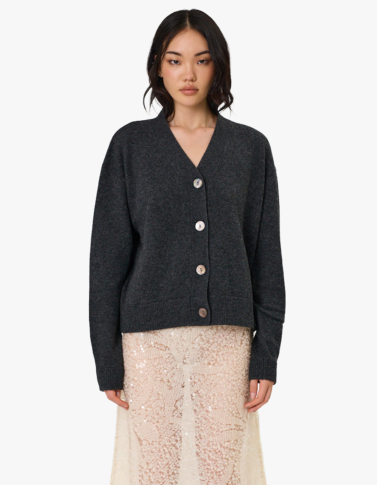 Elevate your wardrobe with Remain's Noa Cardigan in Slate. The perfect length for over dresses or to wear with your favourite denim. This classic style looks effortless and is one of our favourite pieces this season.