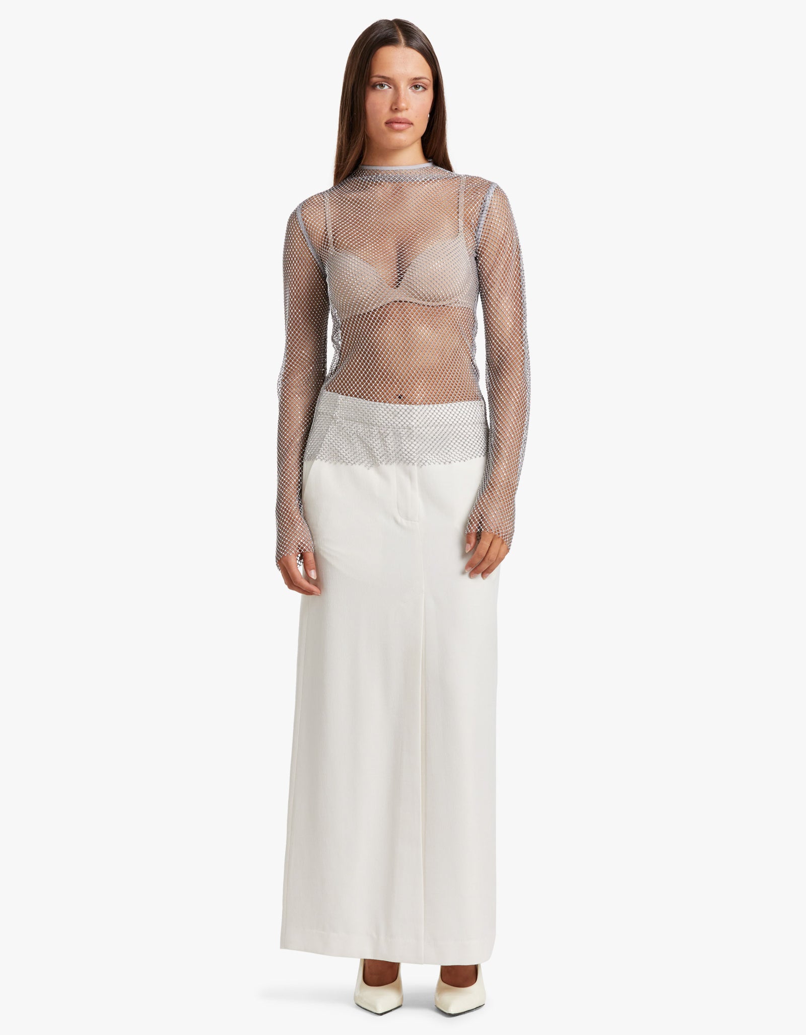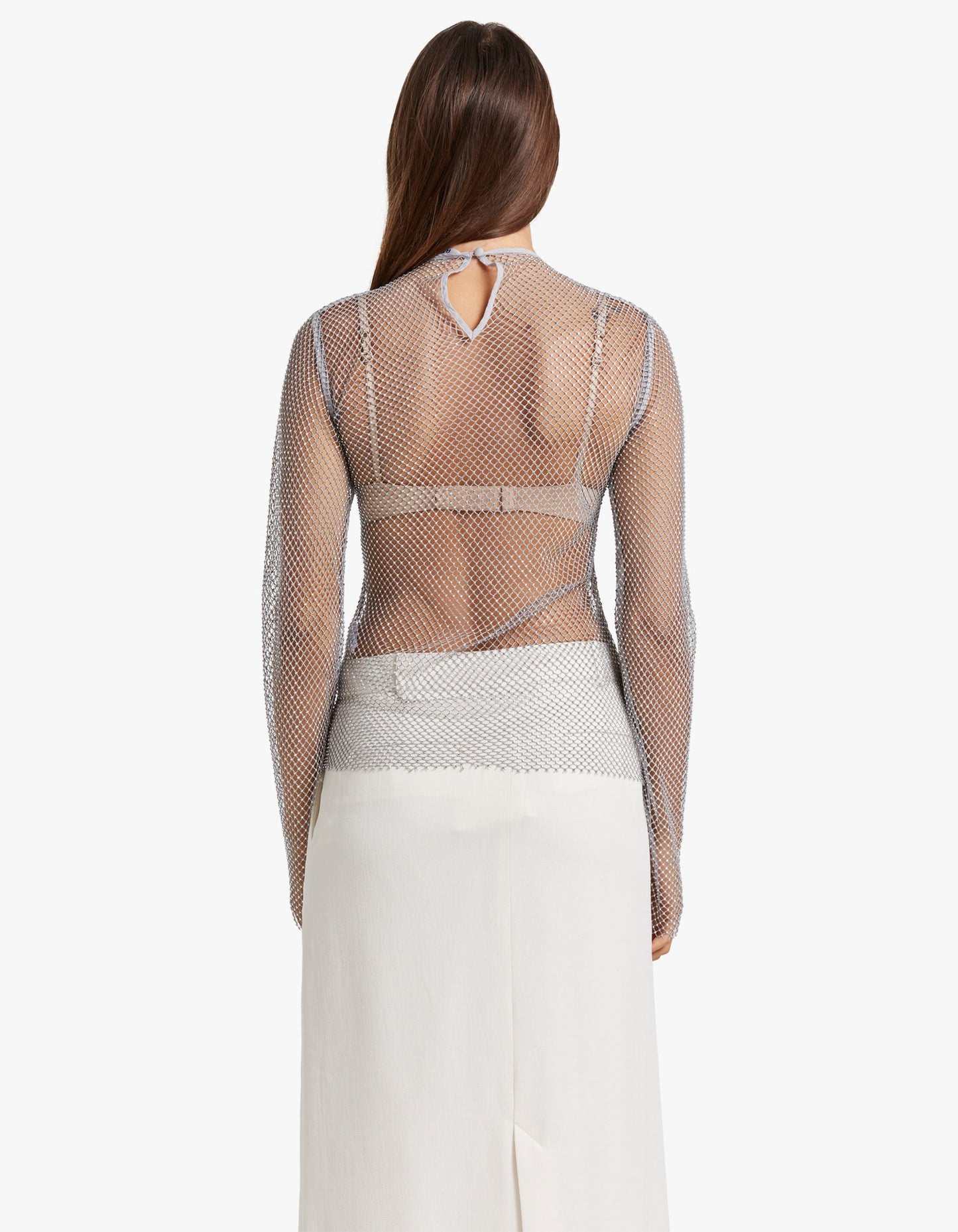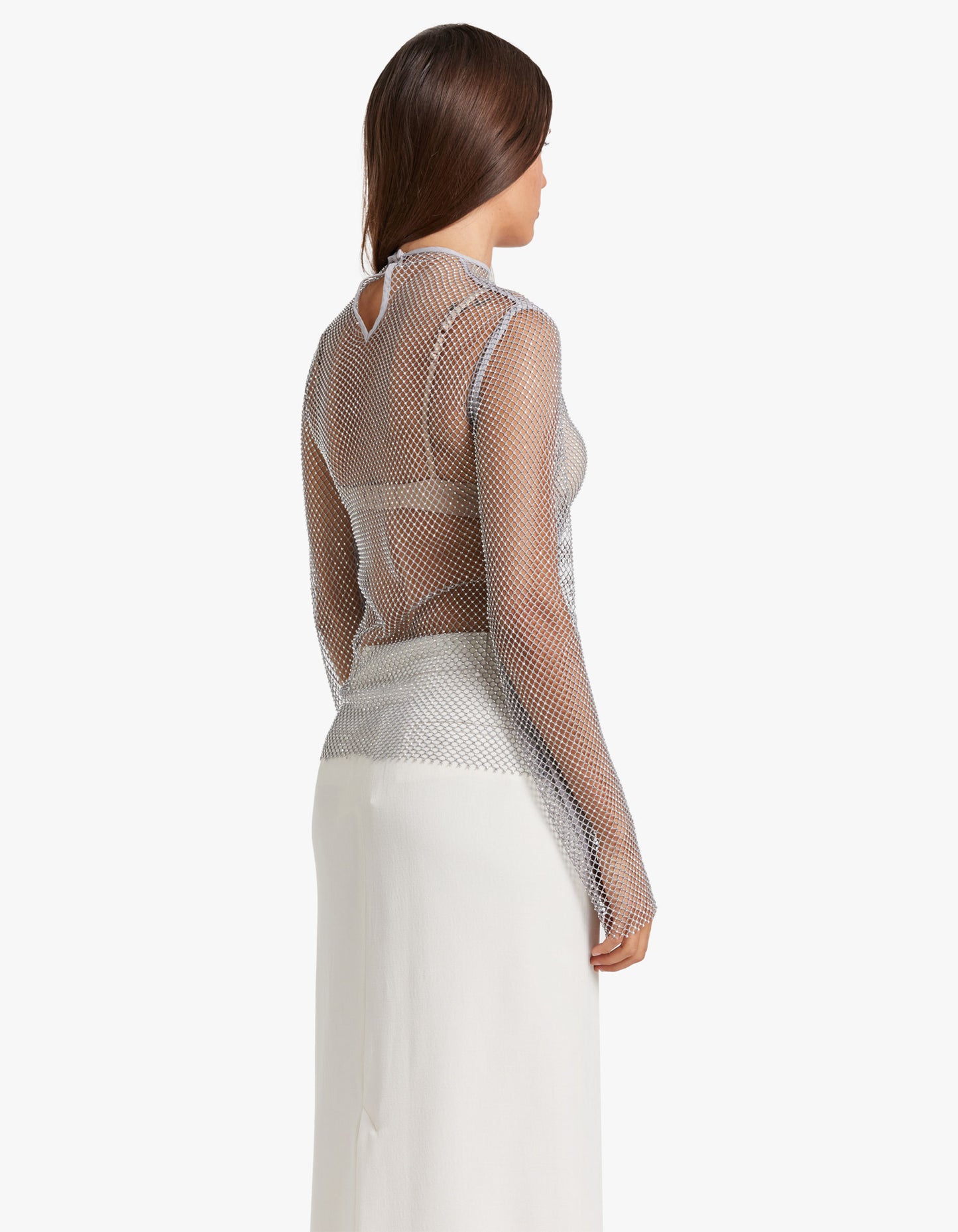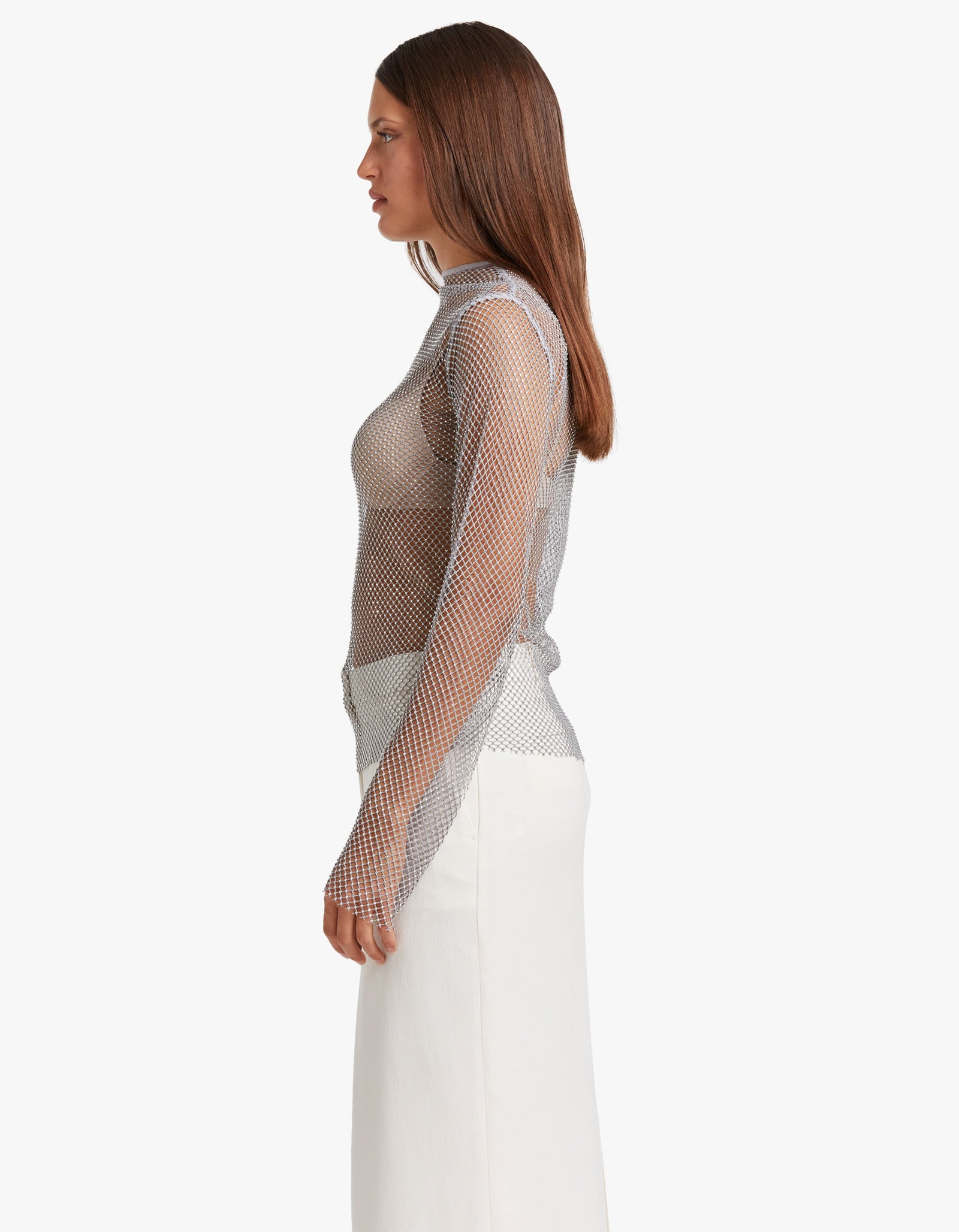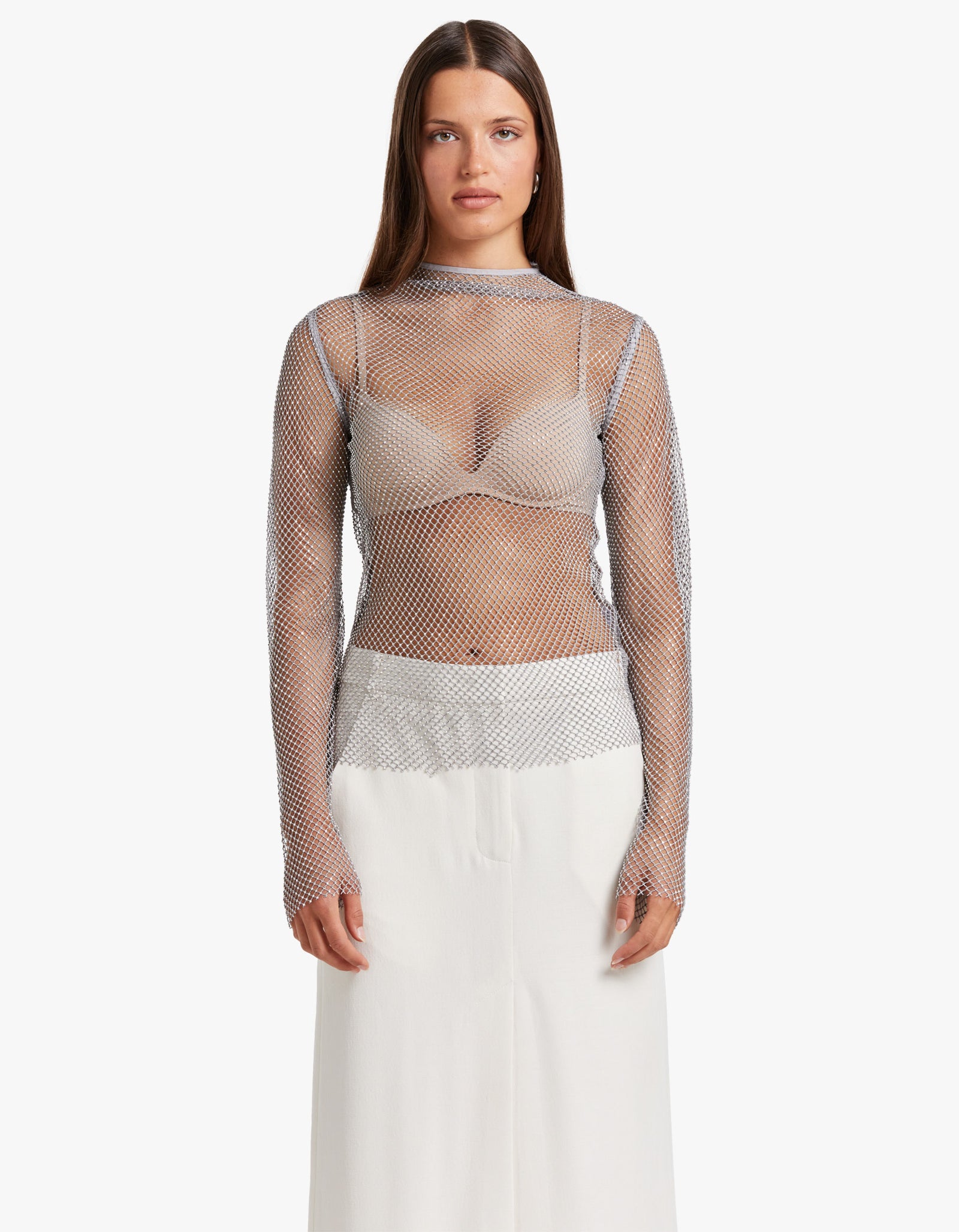 Add a little bling to your wardrobe - designed in New Zealand, the Opal Top from Remain is crafted from a sheer mesh with rhinestone applique. Stand out and make a statement ahead of your next evening event.