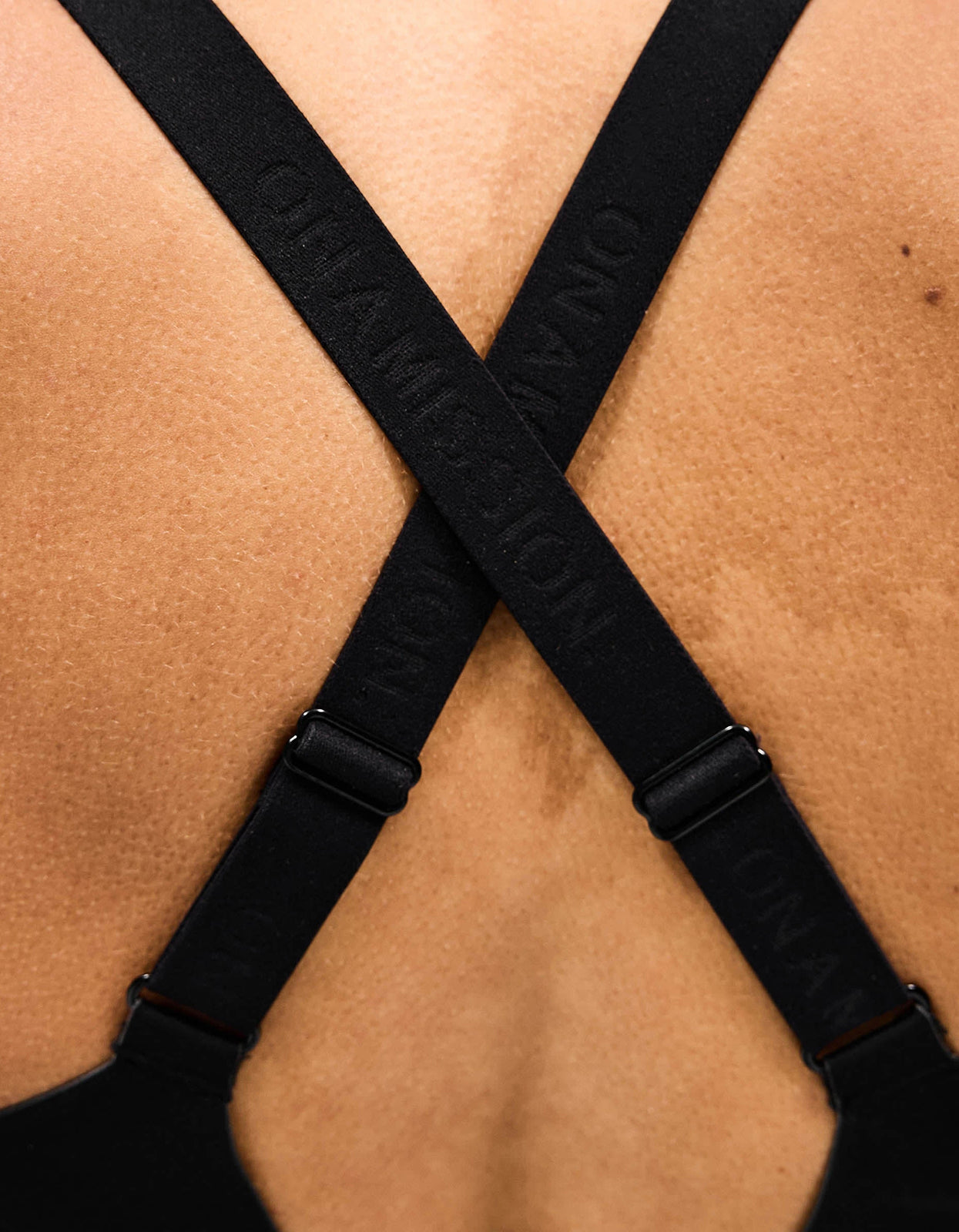 Built to support you through training sessions and cardio days alike, this bra features a second-skin fit with 4-way stretch, ensuring you can move freely without restriction. The matte black Italian fabric delivers breathable comfort, with quick-drying, moisture-wicking and antibacterial properties that keep you fresh, no matter how intense the session.