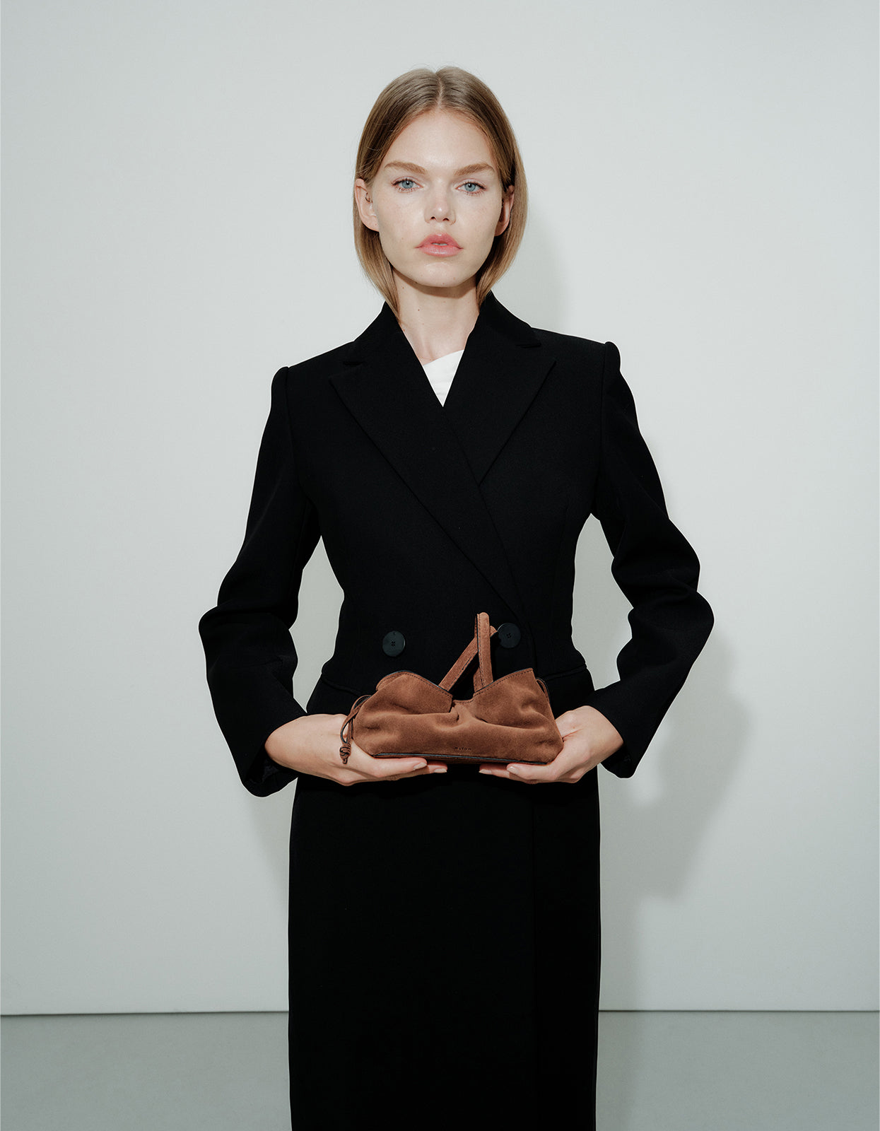 Crafted from premium brown suede, this tote is the perfect accessory for any occasion. Its compact size and elegant design make it both practical and stylish. Ideal for the sophisticated and exclusive individual.