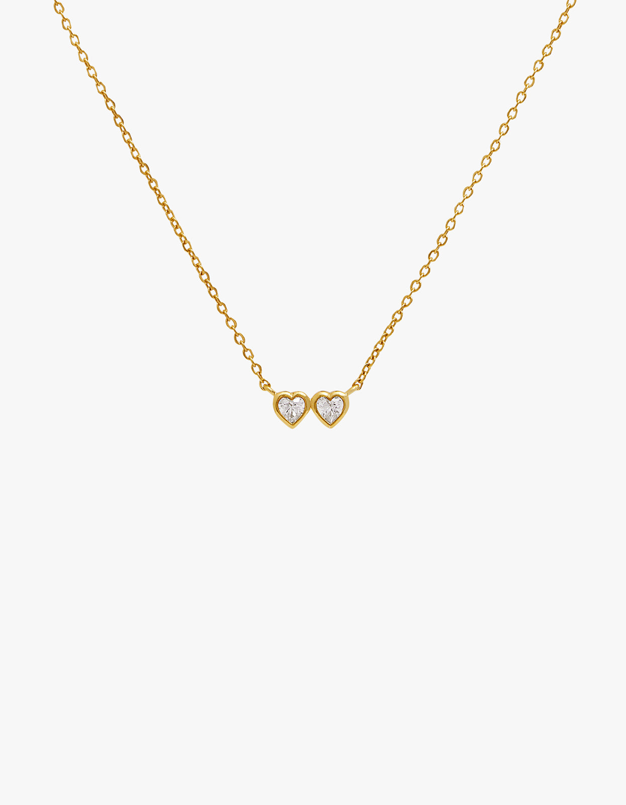 This necklace features two hearts, symbolising the unbreakable bond of love. A perfect gift to express your devotion and celebrate the unity of two hearts.