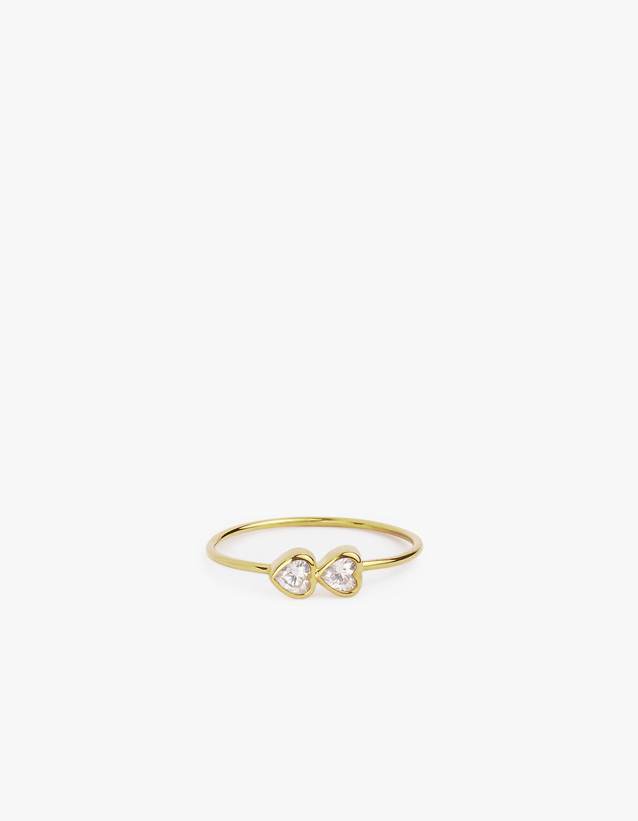 - Heart shaped cubic zirconia stones enclosed in a bezel setting