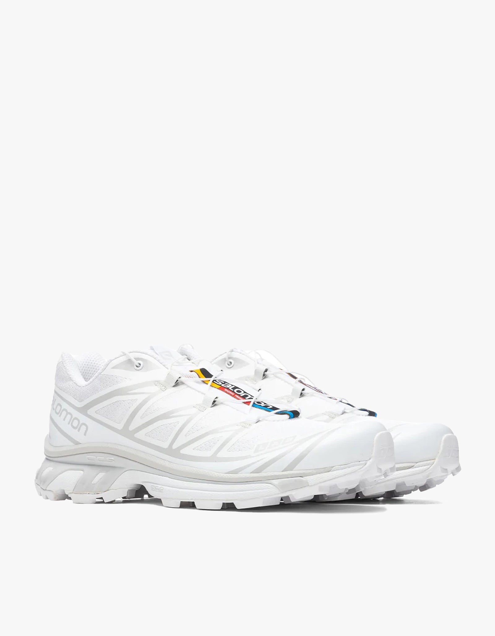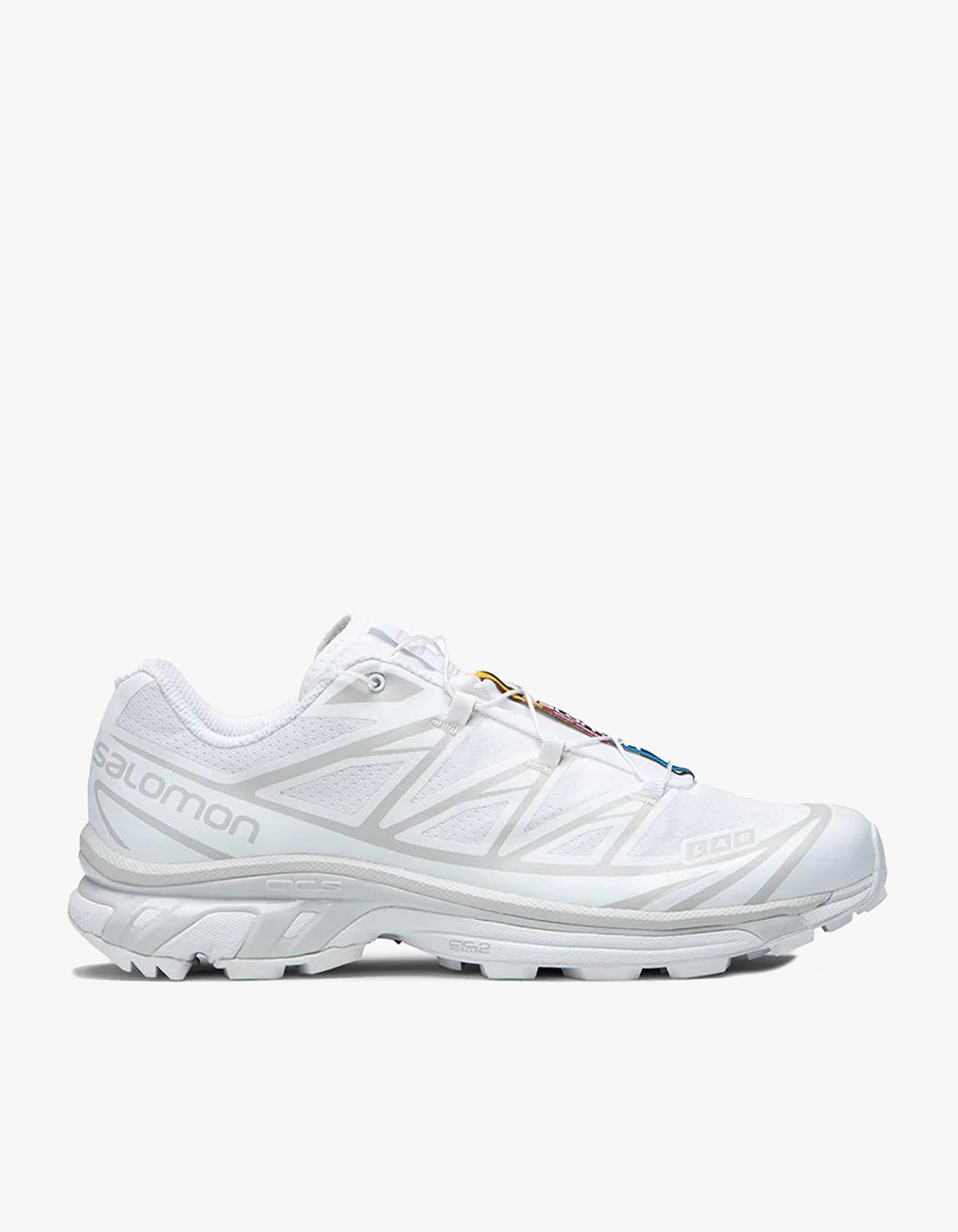 Discover the XT 6 sneakers from Salomon, featuring technical and essential elements in a sleek white colorway with light grey gradient accents.