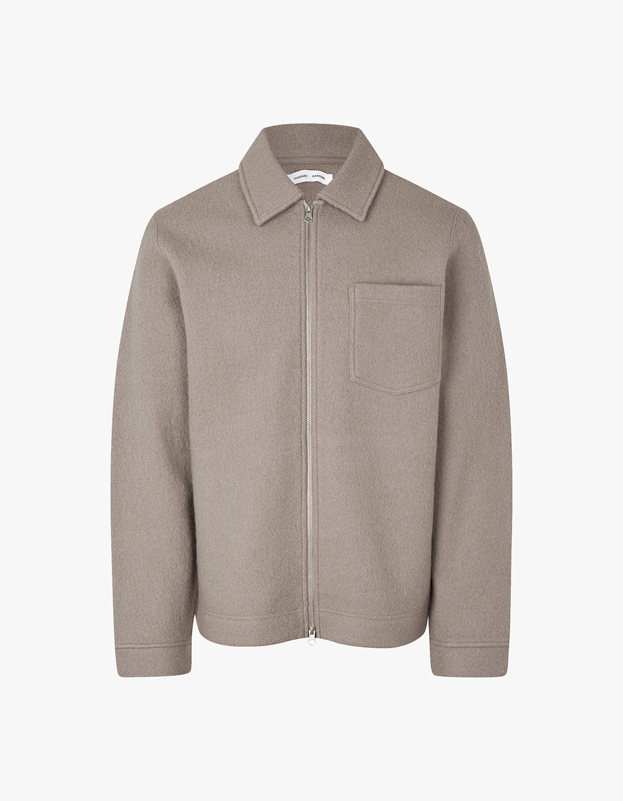 Crafted from felted 100% wool sweatshirt fabric, it offers warmth and a refined texture. The pointed collar and chest pocket add subtle, elegant details, making it a timeless addition to your wardrobe.