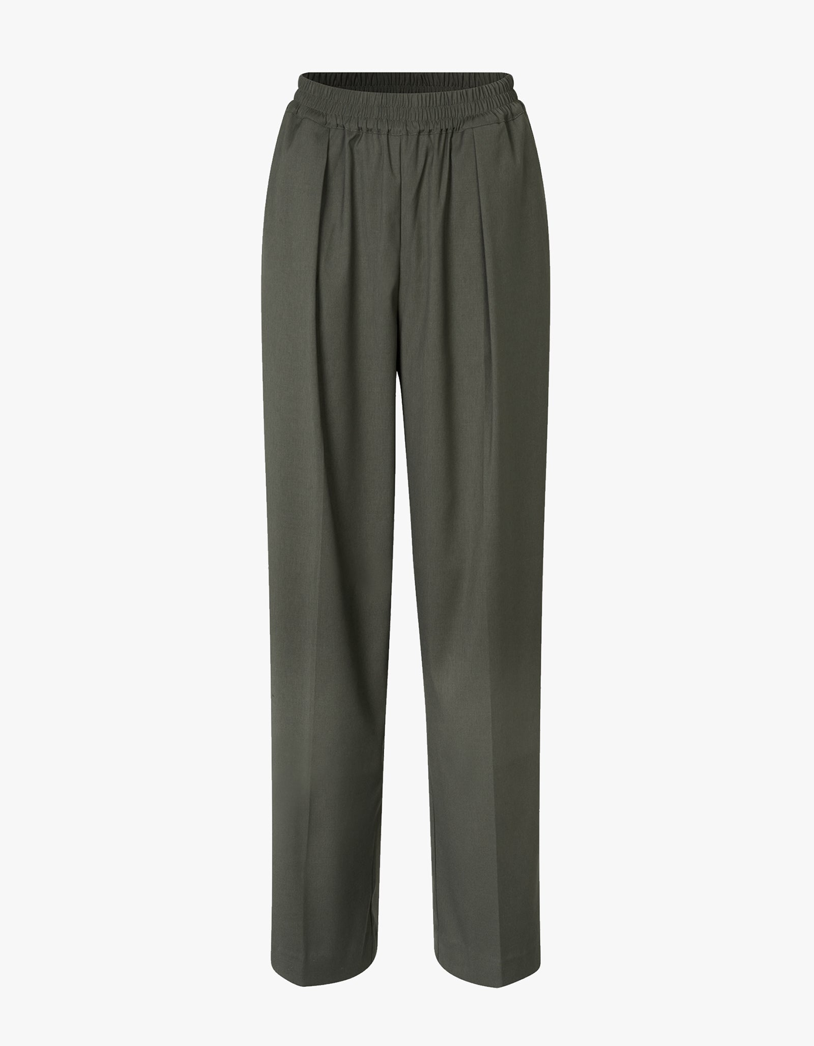 The Julia Trousers 14635 from Samsøe Samsøe feature a loose fit and wide leg - made from a recycled polyester blend, this pull-on style will be a go-to no matter the season. Complete with an elasticated waistband with pleat detailing, pair with a fresh white tee and chunky slides ahead of your weekend errands.