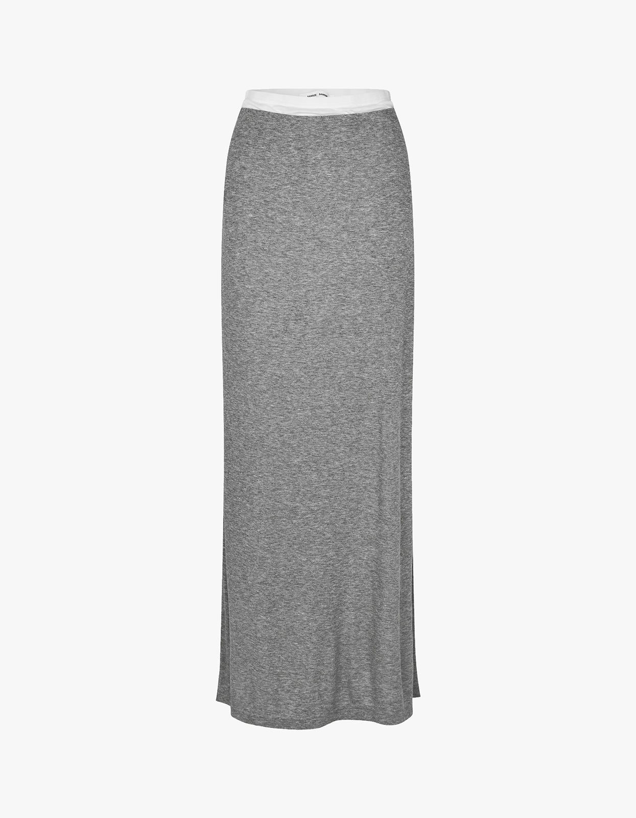 Discover the Samsøe Samsøe Sadou Skirt 15886, a beautifully crafted mid-grey melange maxi skirt that brings effortless elegance to your everyday wardrobe.