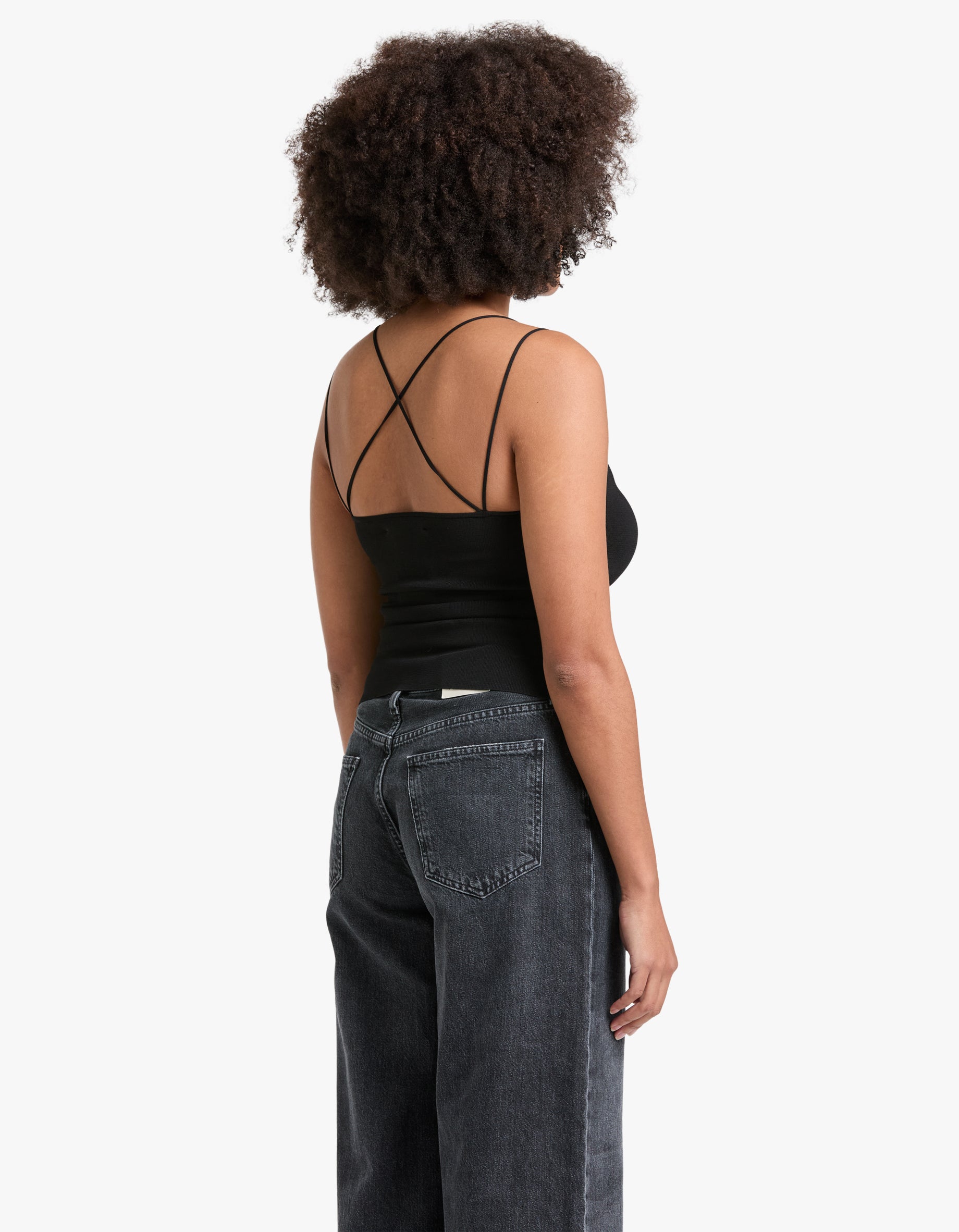 Made with Milano knit fabric, this slim fit top offers a sleek and flattering look. The unique cross over back adds a touch of sophistication to your basic tank. Perfect for any occasion, this top is a must-have for any fashion-forward individual.
