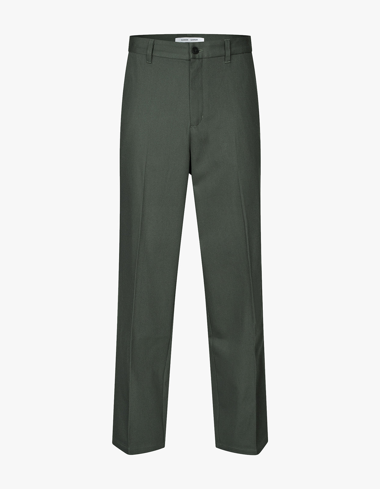 This trouser silhouette creates an effortlessly polished aesthetic, while sharp pressed pleats front and back add structured sophistication. Practical side slit pockets and buttoned welt back pockets offer functional style, complemented by belt loops and a secure button and zipper fly closure. A timeless piece in rich dark evergreen, perfect for building a conscious, elegant capsule wardrobe.