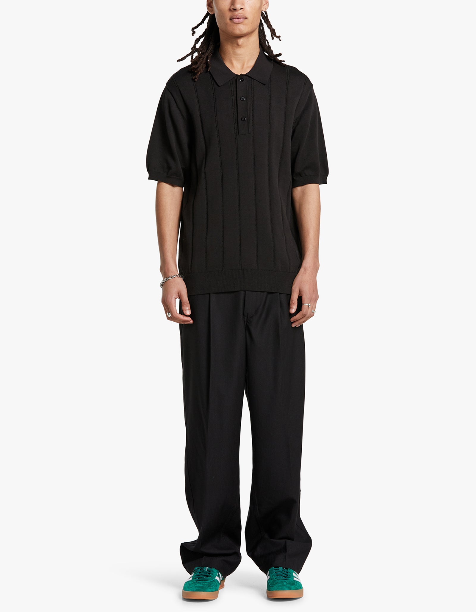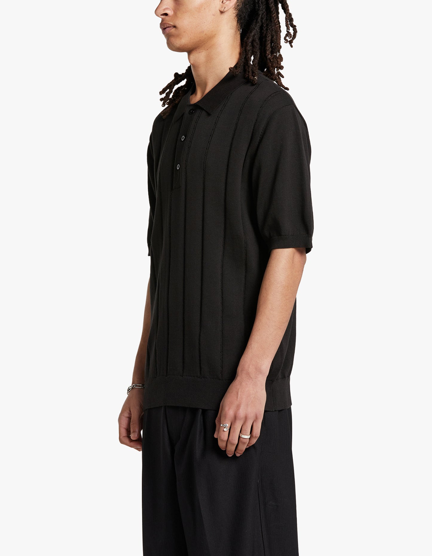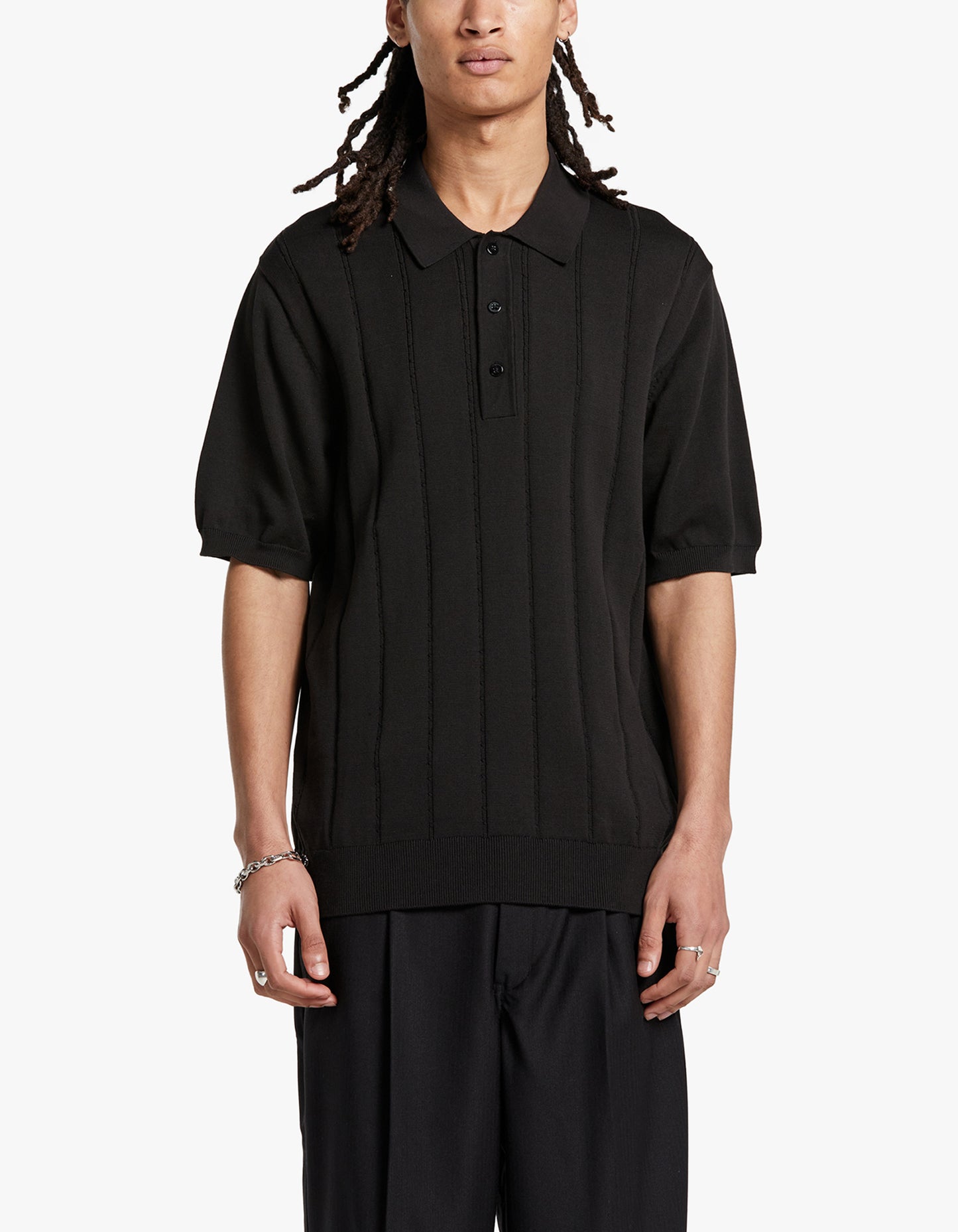 Jahmad Mini Cable Knit Polo - Black