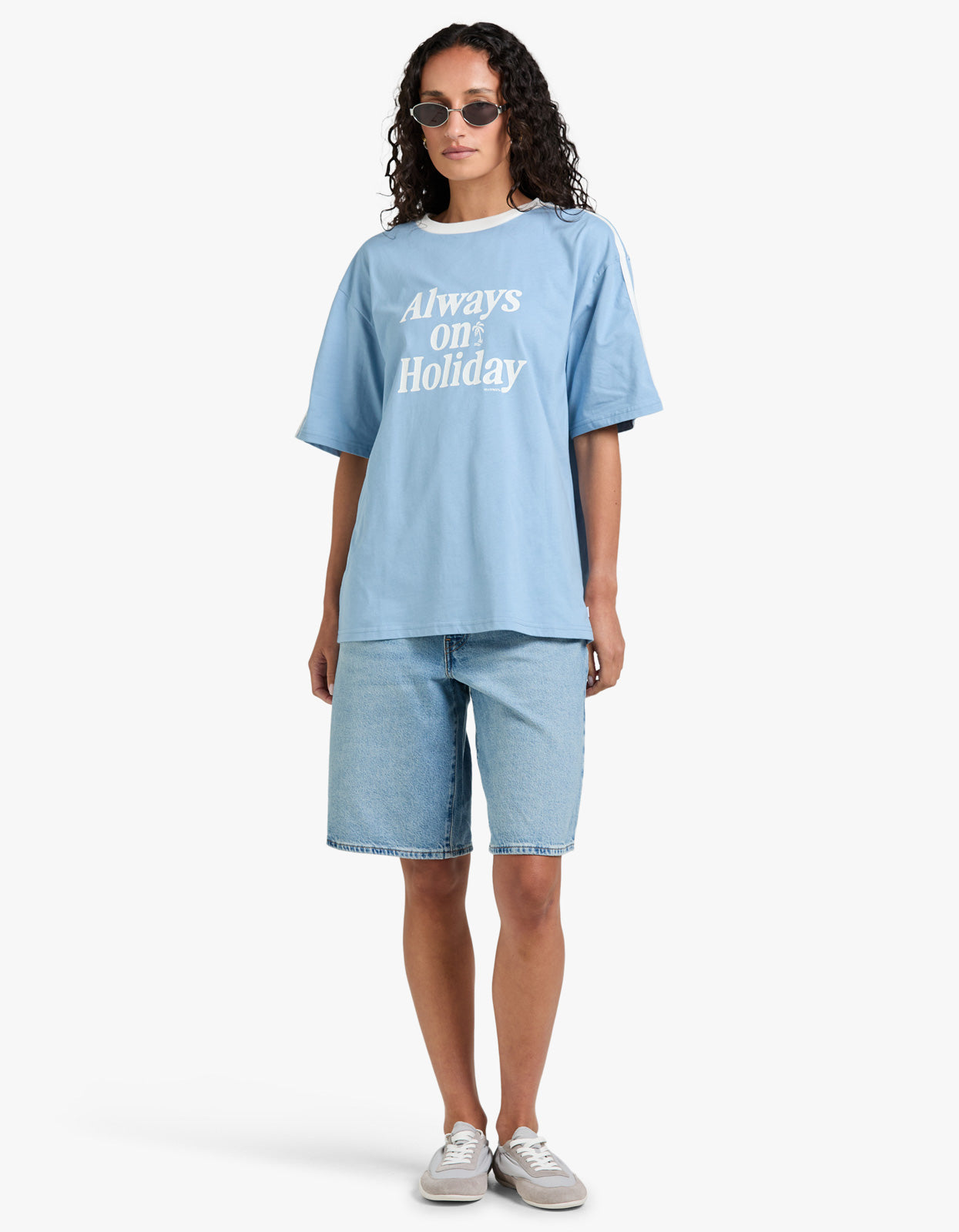 Dusk BlueEscape the everyday with Always On Holiday T-shirt by Sea Street.