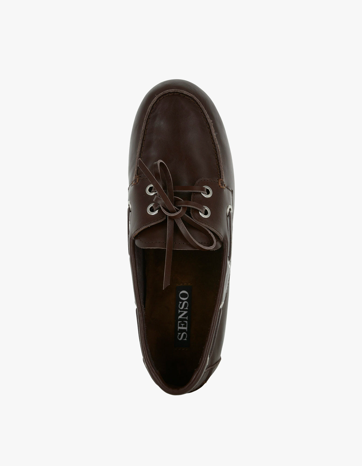 Crafted from rich brown calf leather, the Bateau boat shoe by Senso combines timeless elegance with refined detail.